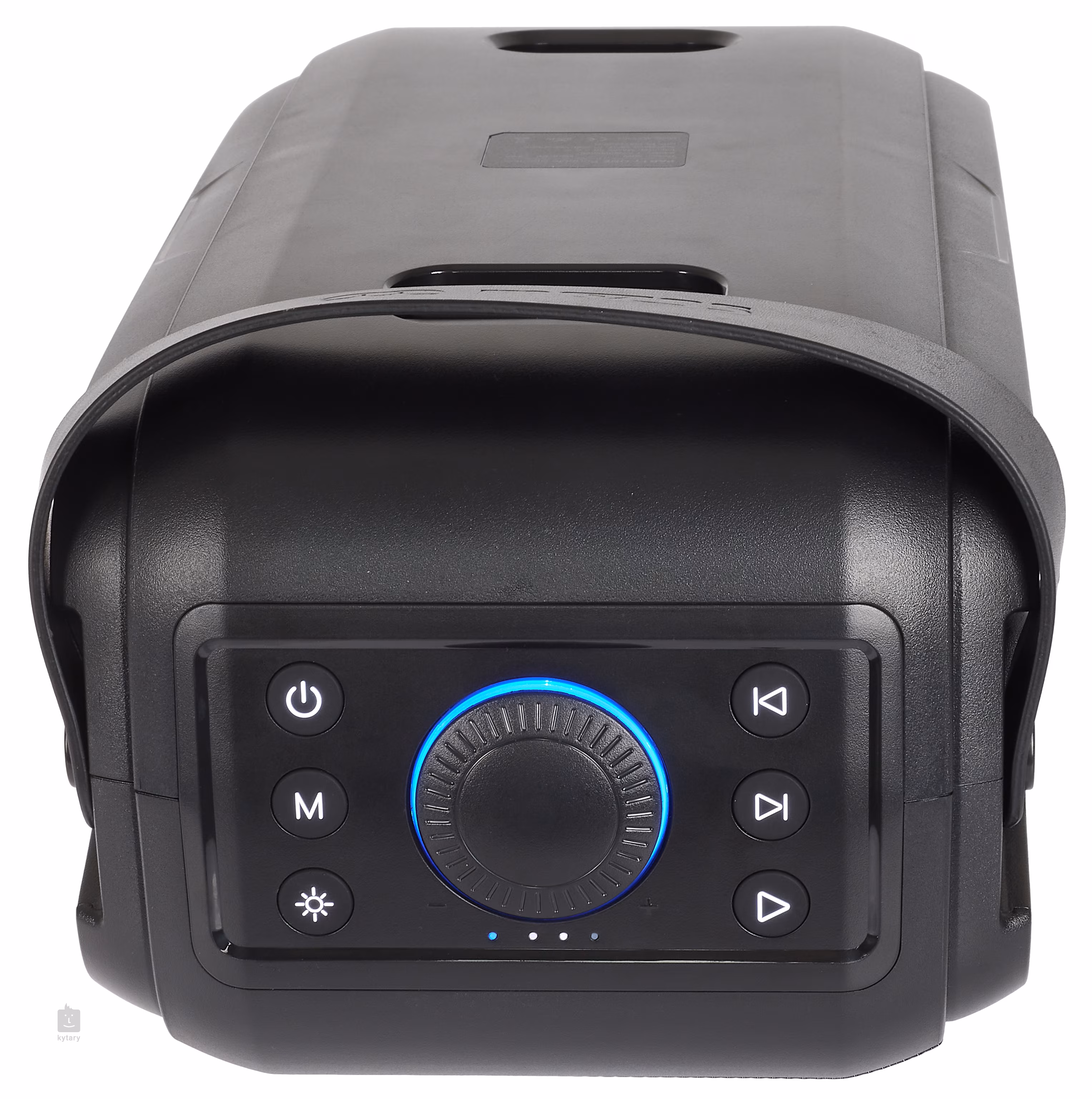Systém zajišťuje výkonný zvuk s bohatými basy a bezdrátovou technologií Bluetooth 5.0. Ovládání je díky přehlednému panelu velice jednoduché. Navíc systém disponuje vypínatelným barevným LED efektem, integrovanou baterií s výdrží až 10 hodin a osvětlením reproduktorů. Snadný transport vám potom zajistí robustní ruční madlo v horní části reproduktoru.