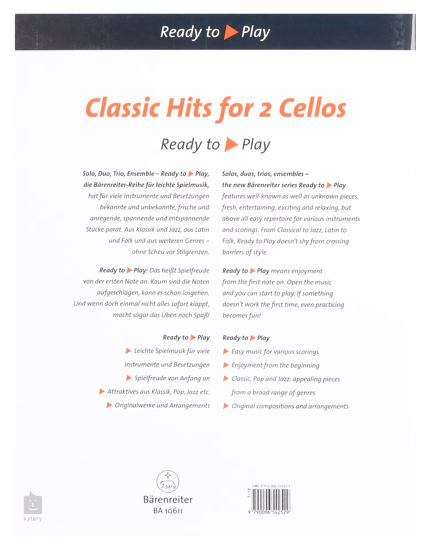 Ediční řada Ready to Play je určena především začínajícím a mírně pokročilým muzikantům. Nabízí slavné melodie z klasické, filmové i populární hudby ve zjednodušených úpravách, které však ctí předlohu a vyznívají tak velmi efektivně. Díky kvalitně zpracovaným doprovodům jsou sešity vhodné i jako zpestření výuky.