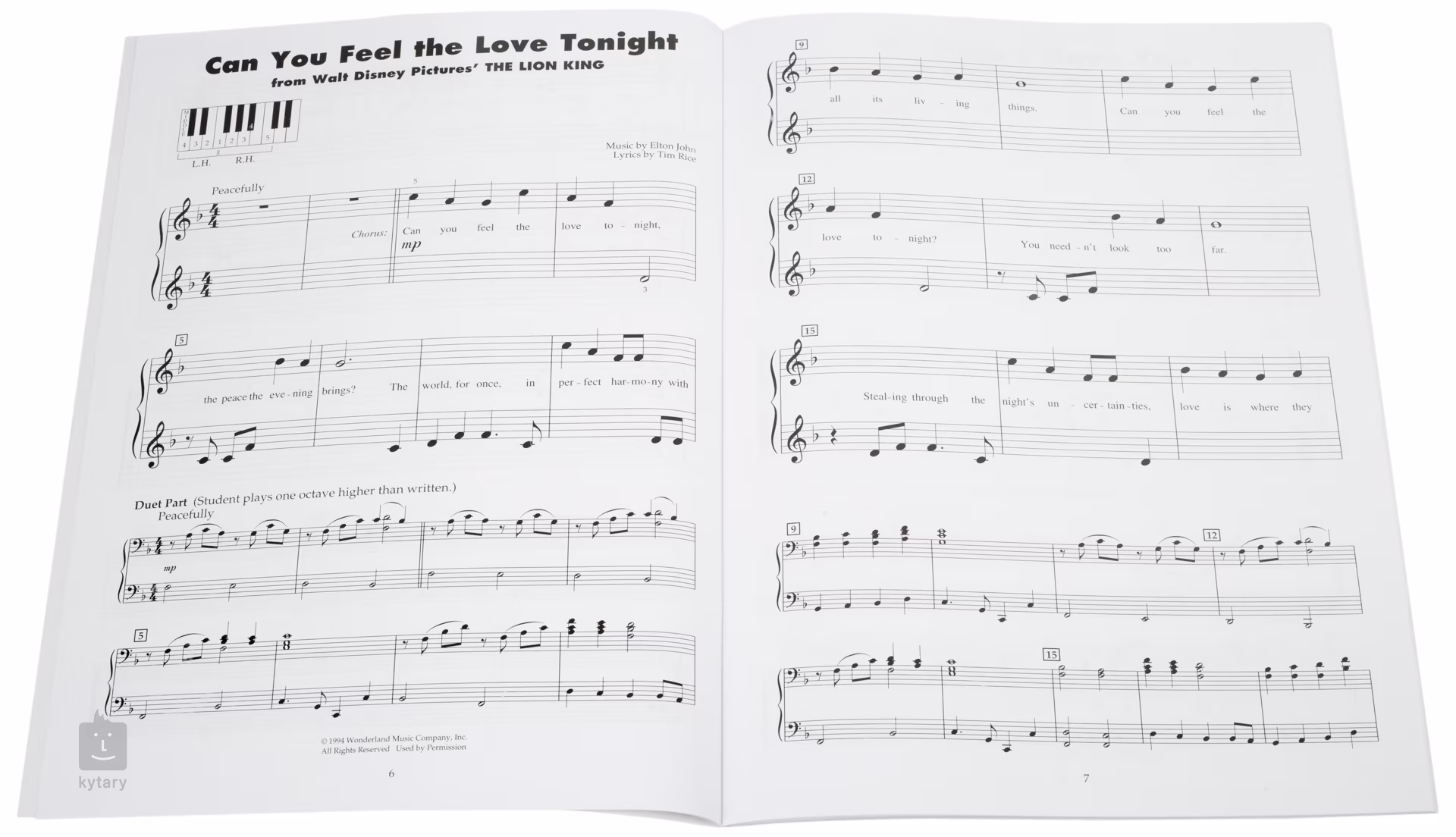 Tato kniha obsahuje sbírku notových záznamů děl, která můžete znát z Disneyho pohádek. Jsou přearanžována tak, aby je bylo možné zahrát jen jednou rukou, a tak se hodí pro úplné začátečníky.