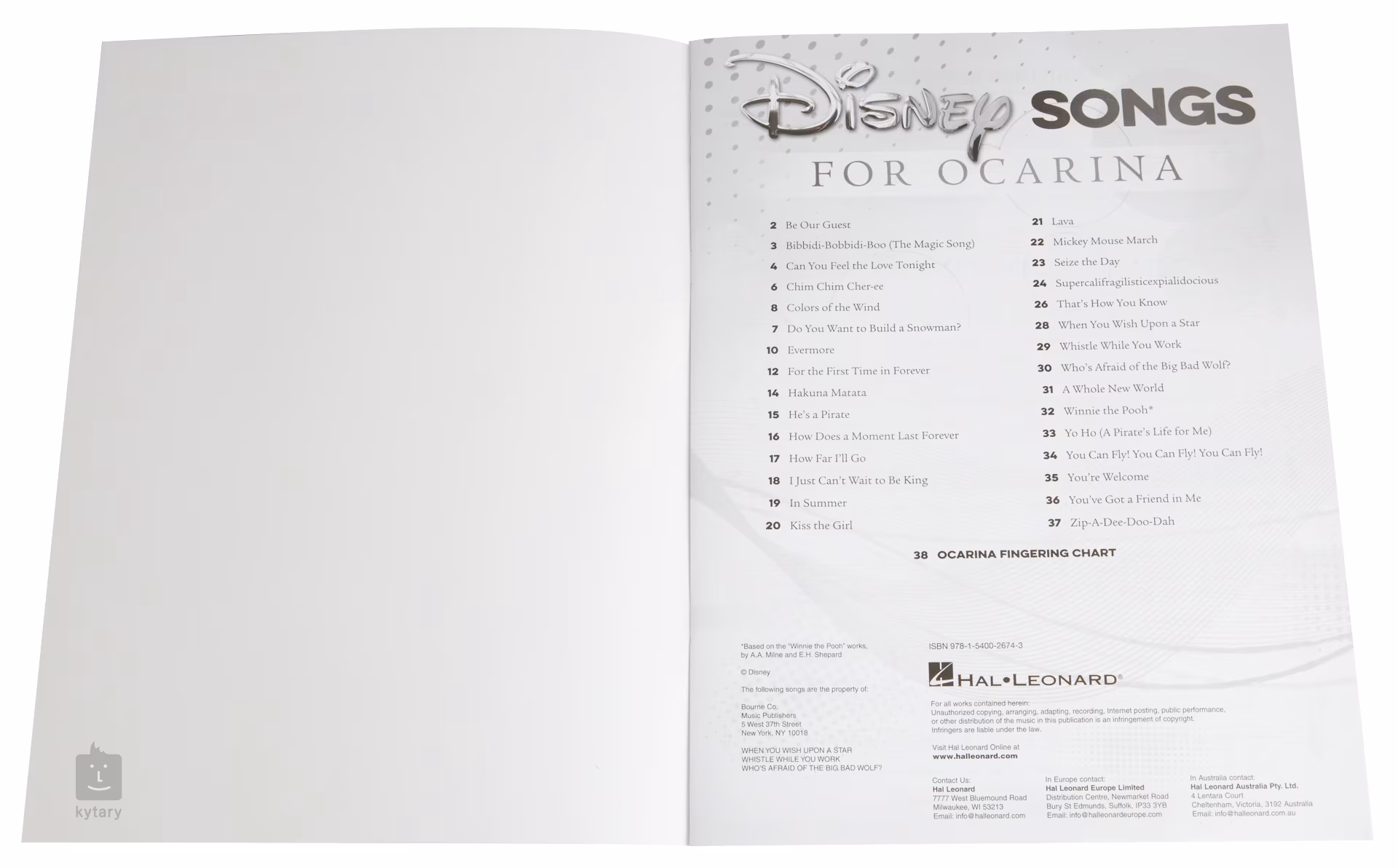Tato publikace obsahuje třicet známých melodií z Disneyho filmů v úpravě pro okarínu s deseti, jedenácti nebo dvanácti dírkami. Skladby jsou uvedeny v notovém zápisu doprovázeném texty.