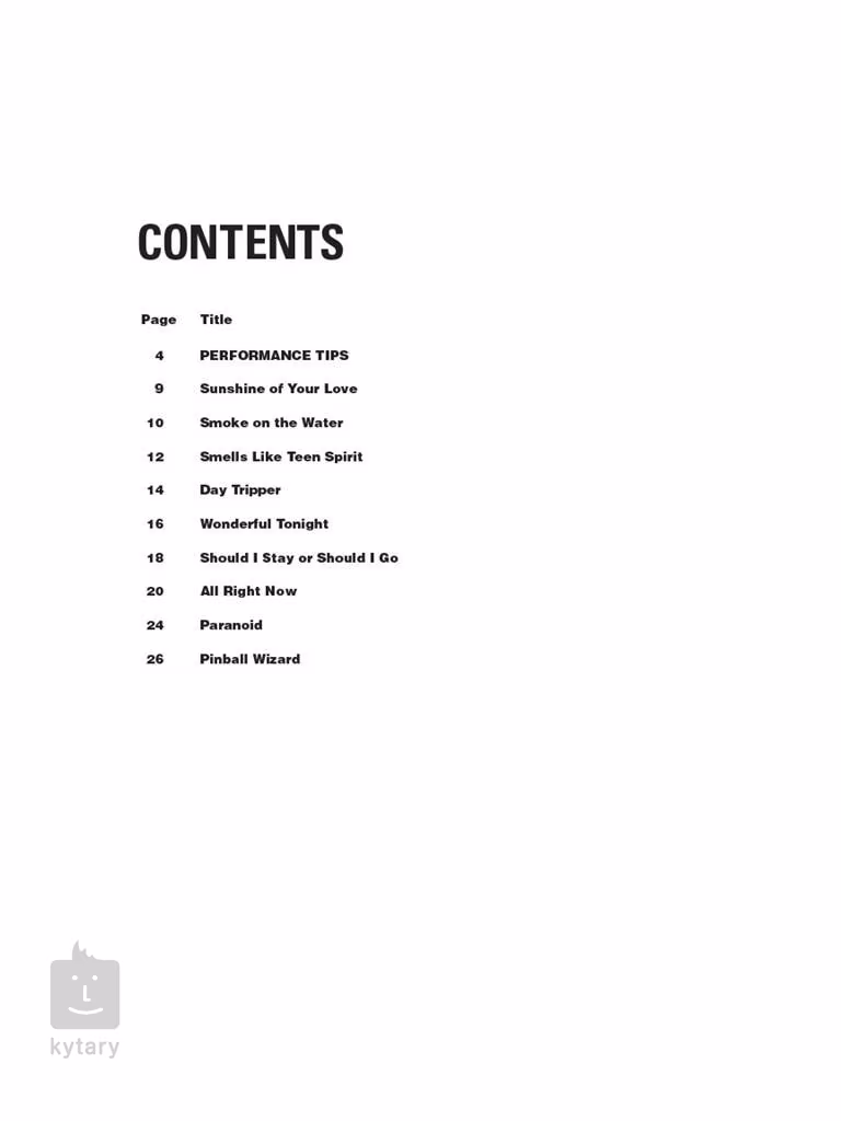 Seznam skladeb: 1. All Right Now 2. Smoke On the Water 3. Paranoid 4. Day Tripper 5. Pinball Wizard 6. Should I Stay Or Should I Go 7. Smells Like Teen Spirit 8. Sunshine of Your Love 9. Wonderful tonight