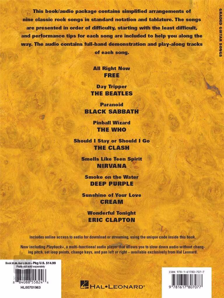 Publikace Graded Guitar Songs nabízí zjednodušené úpravy devíti klasických rockových pecek ve standardním notovém zápisu a kytarových tabulaturách. Skladby jsou řazené podle obtížnosti. Doprovodné online materiály obsahují jak audio doprovody se zvukem celé kapely tak i play-along tracky ke každé skladbě. Publikace je vhodná pro začínající hráče na elektrickou kytaru.