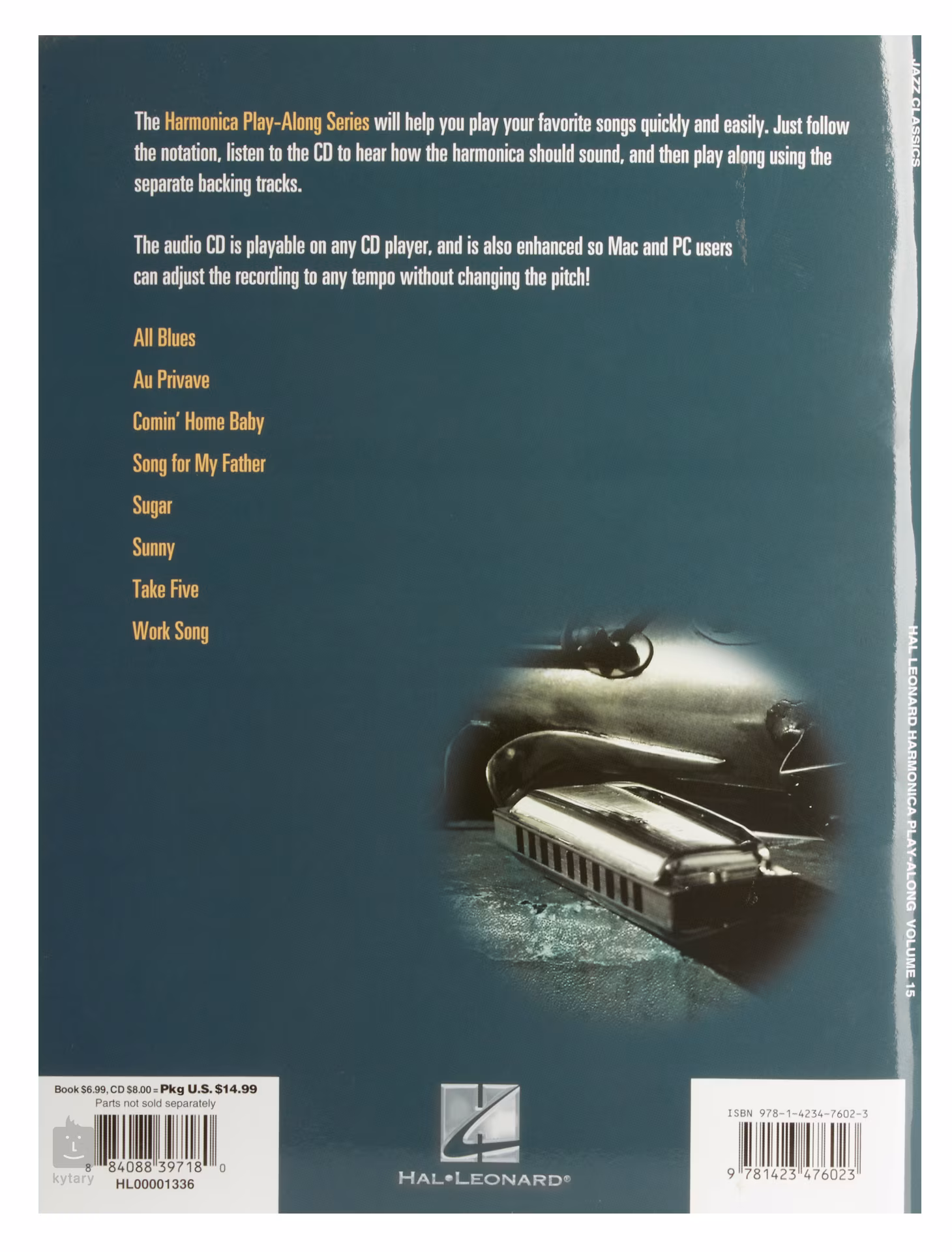 Patnácté pokračování ediční řady Harmonica Play-Along je tentokráte zaměřeno na jazz/blues standardy. Představuje vítané zpestření repertoáru pro mnohé hráče na klasickou blues harmoniku. Osm skladeb doprovází standartní notace i tabulatury pro harmoniku (šipky a čísla). Přiložené audio CD s doprovodnými tracky přehrajete na libovolném přehrávači, na PC či Mac můžete navíc nastavit libovolné tempo, aniž byste měnili ladění nahrávky.