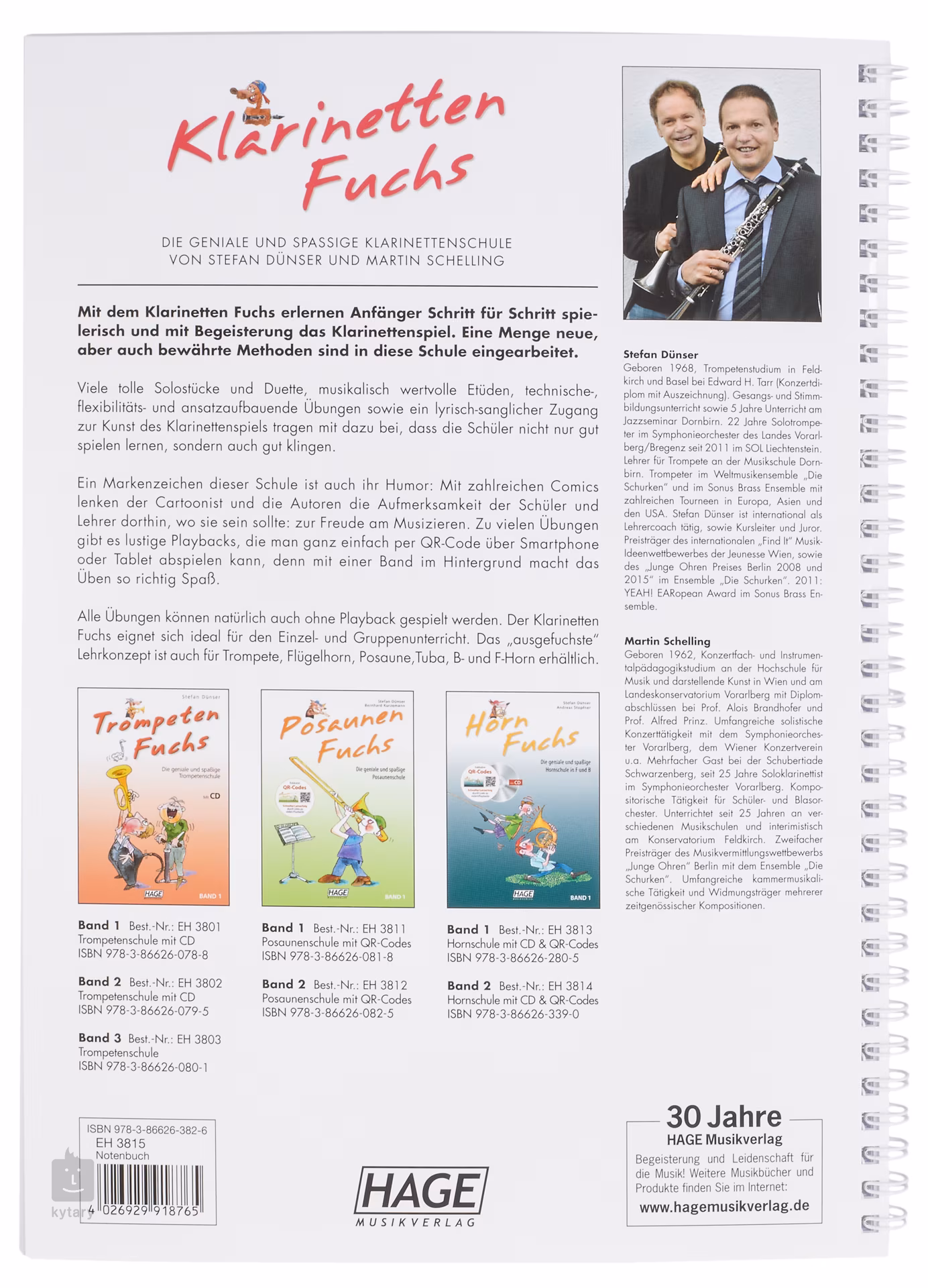 Klarinetten Fuchs 1 je prvním dílem školy hry na klarinet vhodné pro individuální výuku i výuku na hudebních školách. Publikace nabízí širokou škálu skladeb pro sólový nástroj i duetů a muzikální etudy a cvičení na procvičení techniky. Nedílnou součástí učebnic je i rozumná dávka humoru, protože hra na hudební nástroj by, ať už dospělého člověka nebo dítě, měla především bavit. Přes QR kód rovněž získáte přístup k doprovodným nahrávkám k mnoha cvičením.