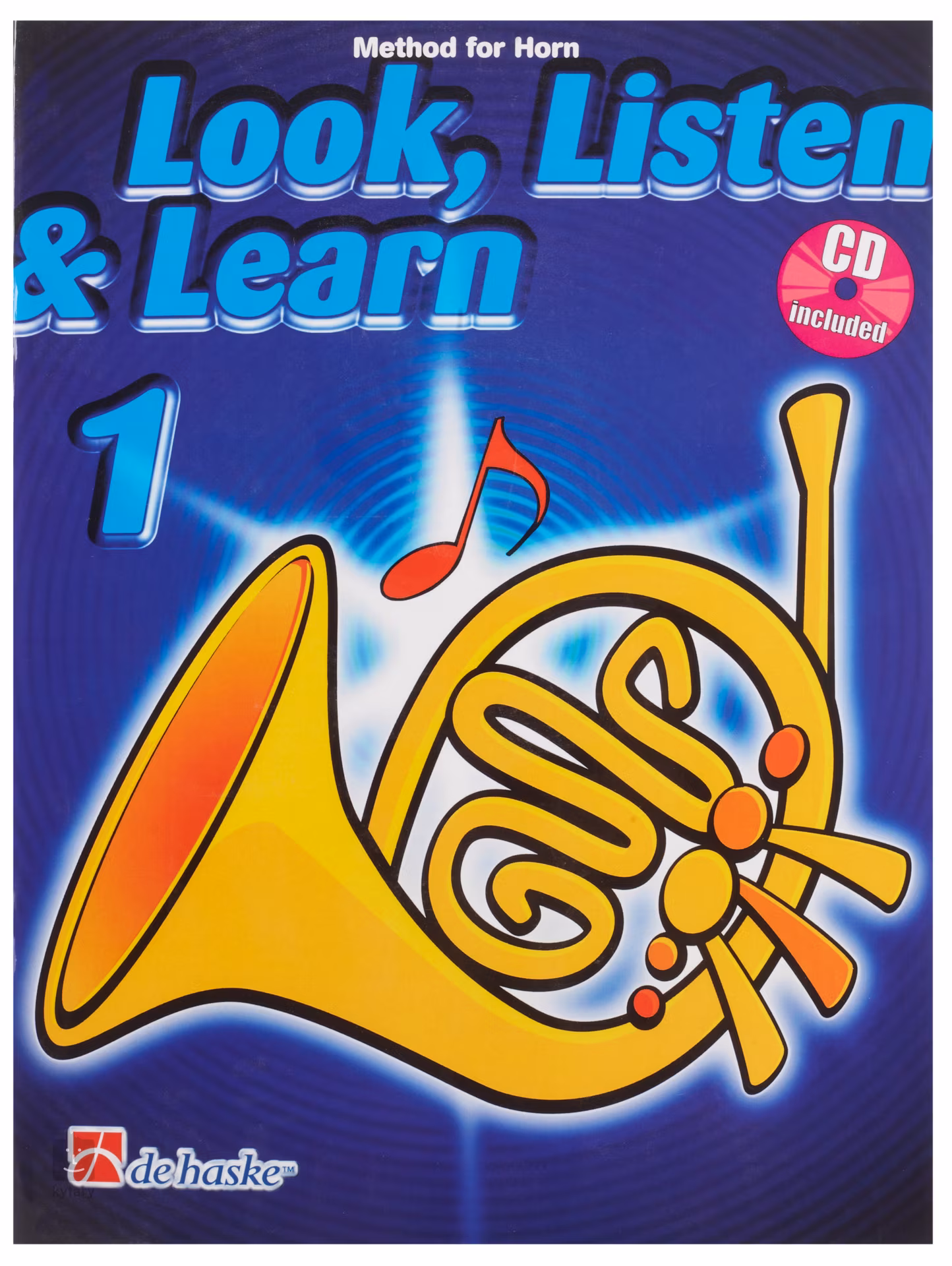 Škola hry na lesní roh Look, Listen & Learn 1 – Horn vás provede základy techniky hry, seznámí s hudební teorií i historií nástroje. Cvičení, stupnice a krátké skladbičky doplňují osvěžující hudební hádanky a hříčky. Publikaci provází přibalené audio CD s instruktivními nahrávkami.