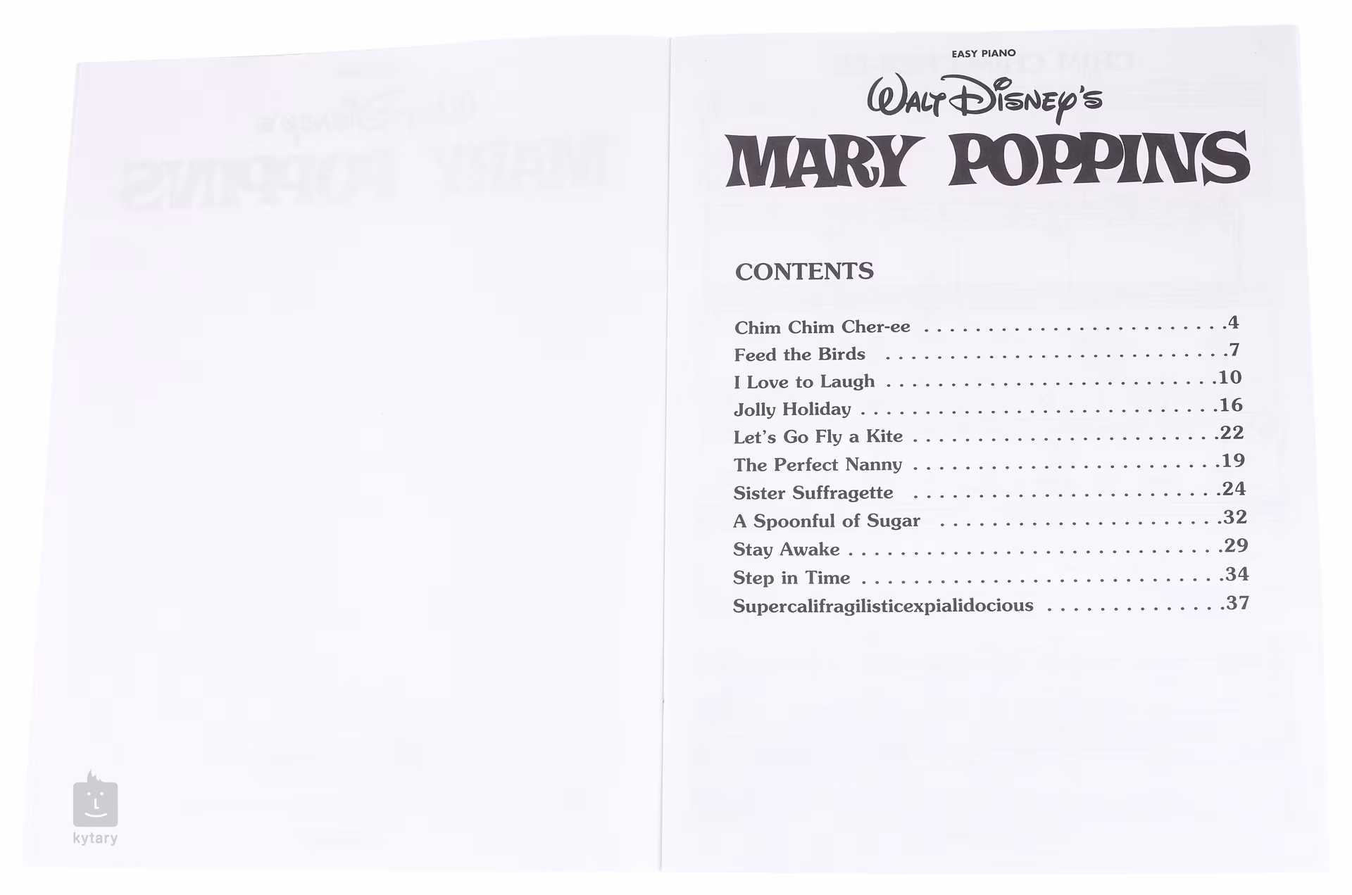 Tato kniha obsahuje skladby z populárního Disneyho filmu Mary Poppins. U každého díla je zaznamenán klavírní part, text a akordové značky.