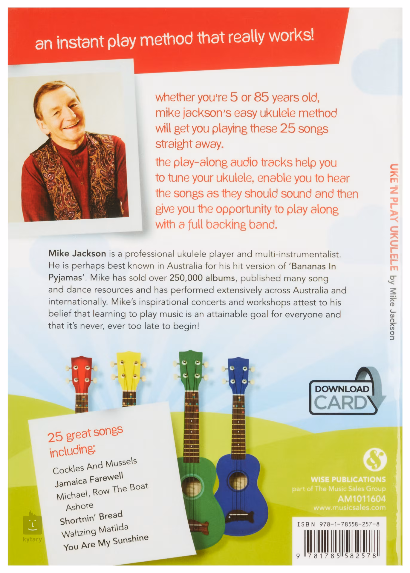 Nové doplněné vydání bestselleru Uke´n Play Ukulele. Profesionální hráč na ukulele a zkušený hudební pedagog Mike Jackson zde srozumitelně vysvětluje vše pěkně od základů. Publikace obsahuje pětadvacet známých skladeb s progresivní obtížností. Texty skladeb doprovází akordy s graficky znázorněnými prstoklady, takže si písničky můžete snadno zazpívat s dětmi. Publikace též nabízí odkaz na stažení audio souborů.