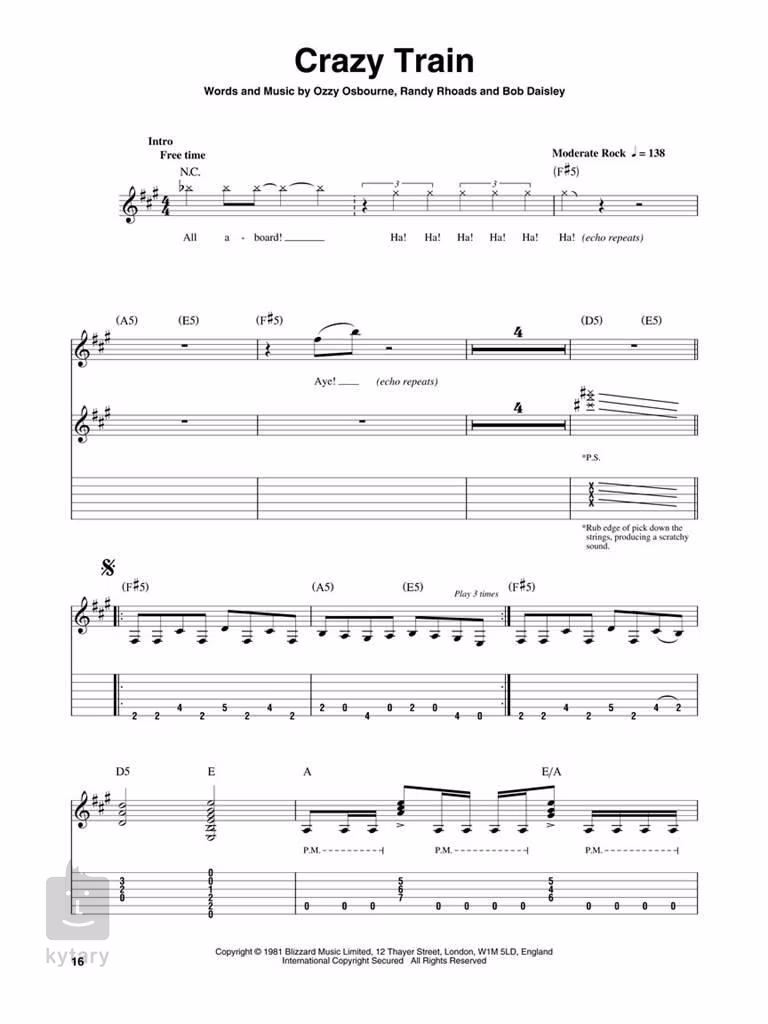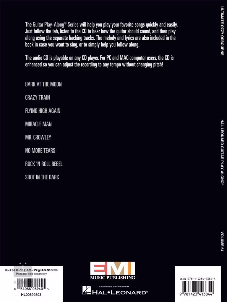 S publikací Ozzy Osbourne z řady Guitar Play-Along Series se rychle a snadno naučíte hrát slavné skladby Ozzyho Osbournea. Nesmrtelné hymny jako No More Tears, Mr. Crowley nebo Crazy Train jsou zaznamenány v kytarových tabulaturách a doprovozeny texty s melodickou linkou zpěvu v notovém zápisu.