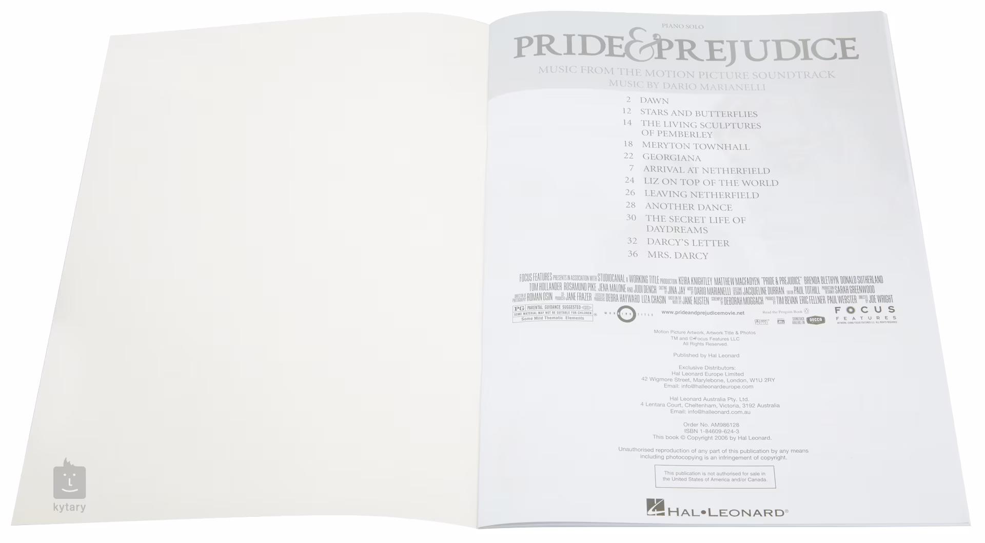 Tato kniha je určena pro pokročilé klavíristy. Obsahuje skladby z populárního filmu Pýcha a předsudek.