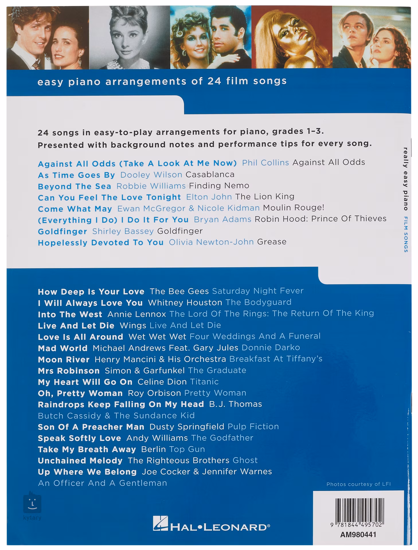 Knihy ze série Really Easy Piano jsou určené pro začínající klavíristy, kteří si chtějí zahrát populární skladby. Kromě notových záznamů zde naleznete i doporučení jak hrát. Tento díl obsahuje nejznámnější filmové melodie.