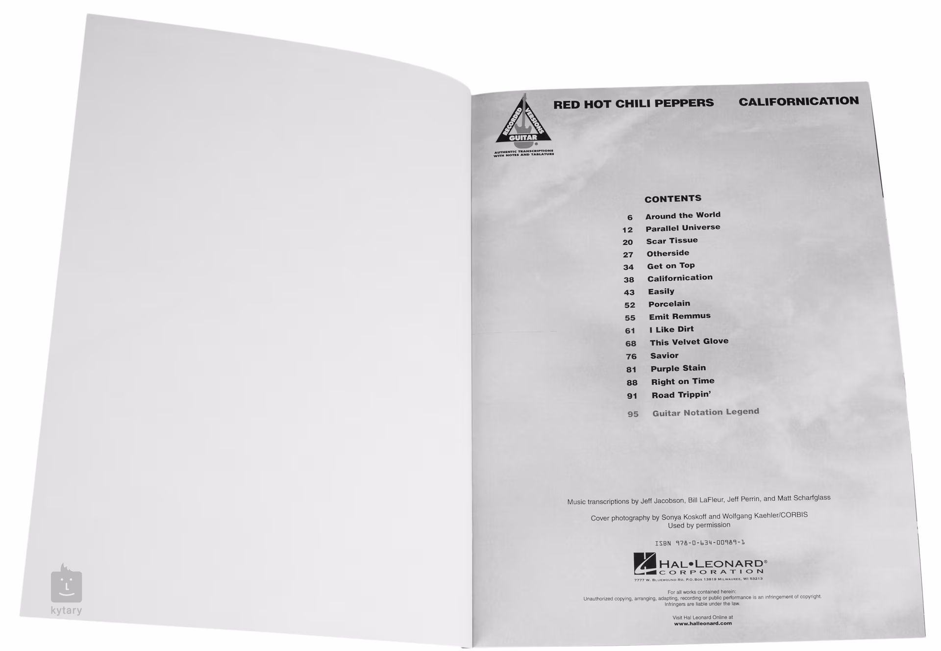 Tato kniha obsahuje skladby z alba Californication od kapely Red Hot Chili Peppers. U každého díla je zaznamenán kytarový part v tabulatuře i notách, text a akordové značky.