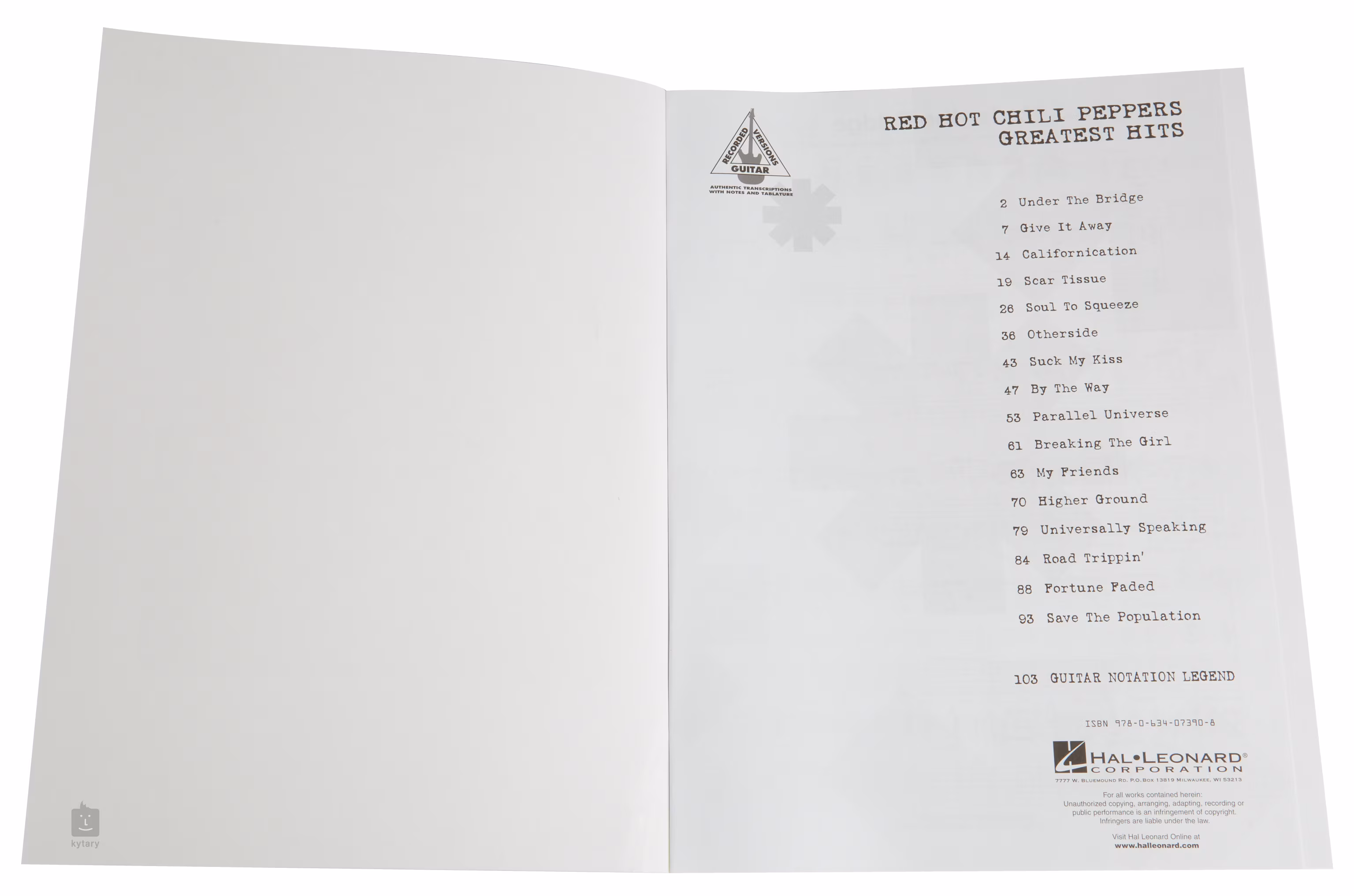 Tato kniha obsahuje skladby z alba Geatest Hits od kapely Red Hot Chili Peppers. U každého díla je zaznamenán kytarový part v tabulatuře i notách, text a akordové značky.