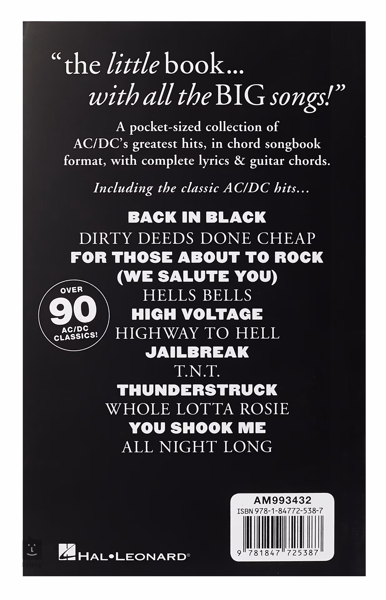 Zpěvníky z edice Little Black Book obsahují texty a akordy k desítkám populárních skladeb. Tato verze těchto zpěvníků kapesní velikosti představuje ty největší hity AC/DC.