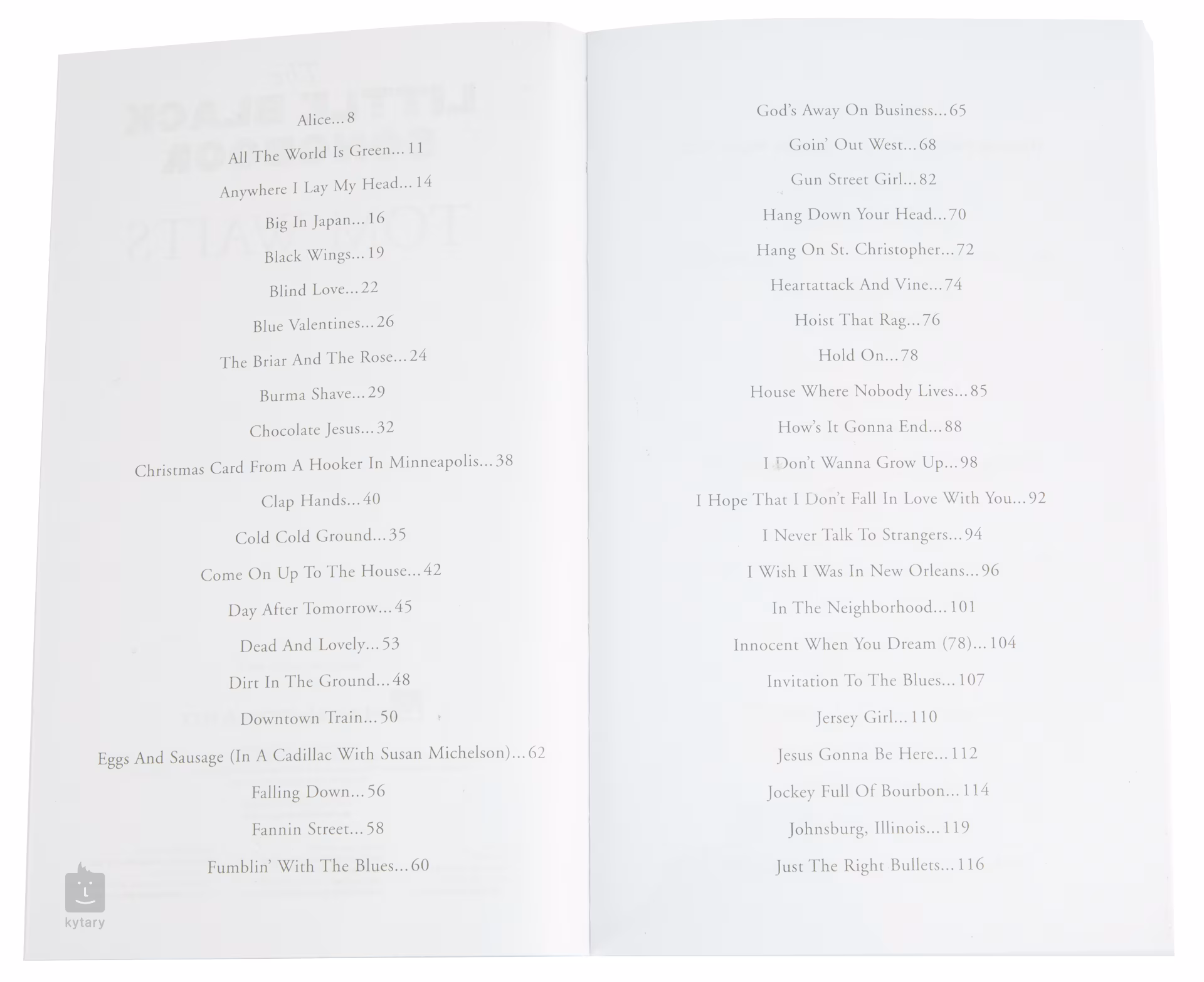 Knihy z edice The Little Black Book jsou zpěvníky, které obsahují text a akordové značky, a nejvíc je tak ocení kytaristé. Tento díl je věnován skladbám Toma Waitse.