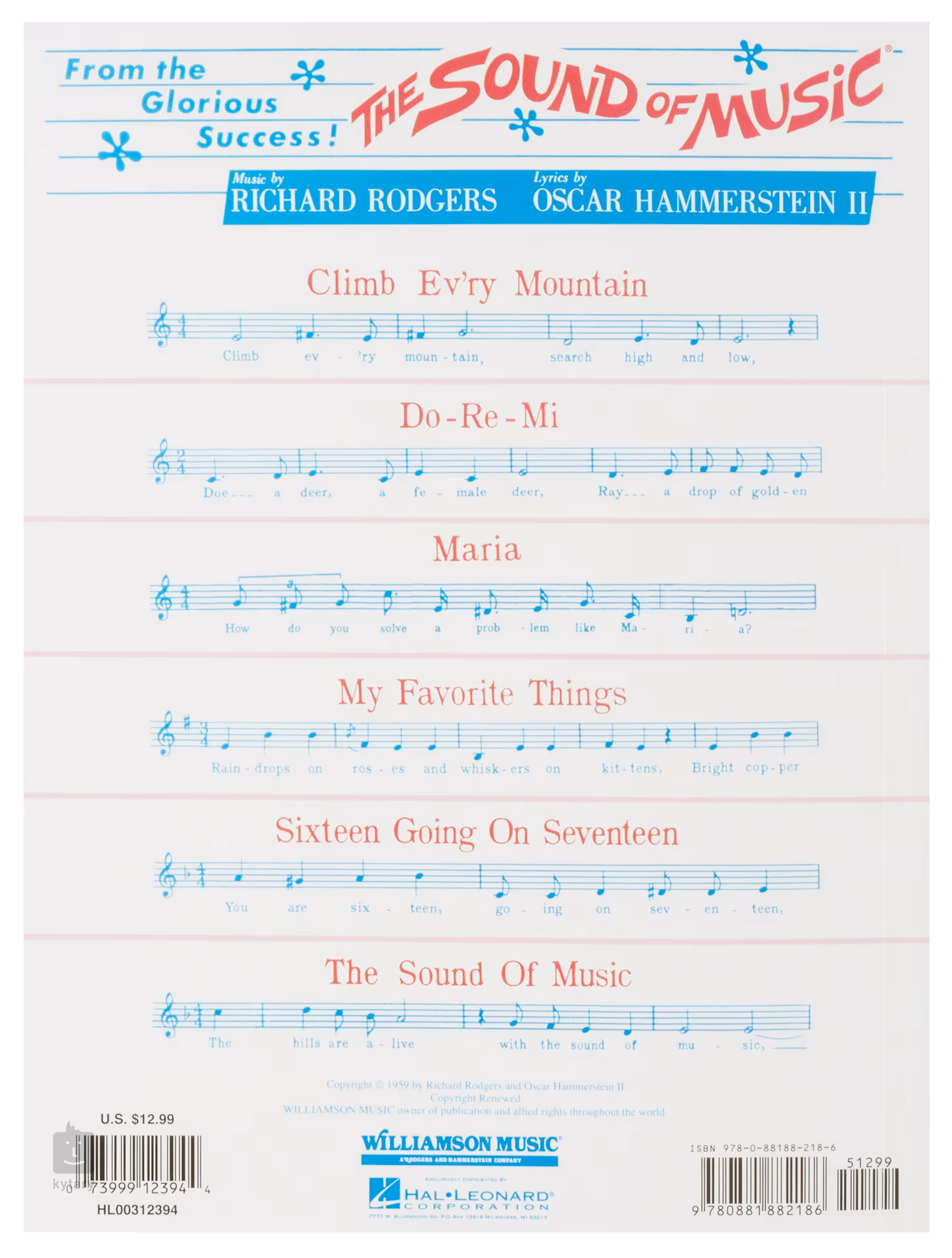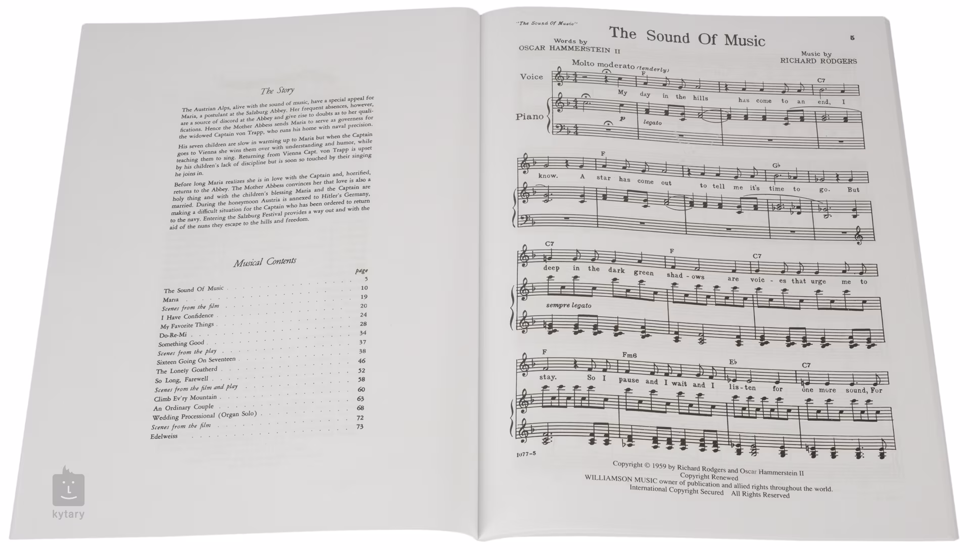 Tato kniha obsahuje skladby z populárního filmu Za zvuků hudby. U každého díla je zaznamenán klavírní part, kytarový part a text s melodií. Součástí je i sbírka fotografií.