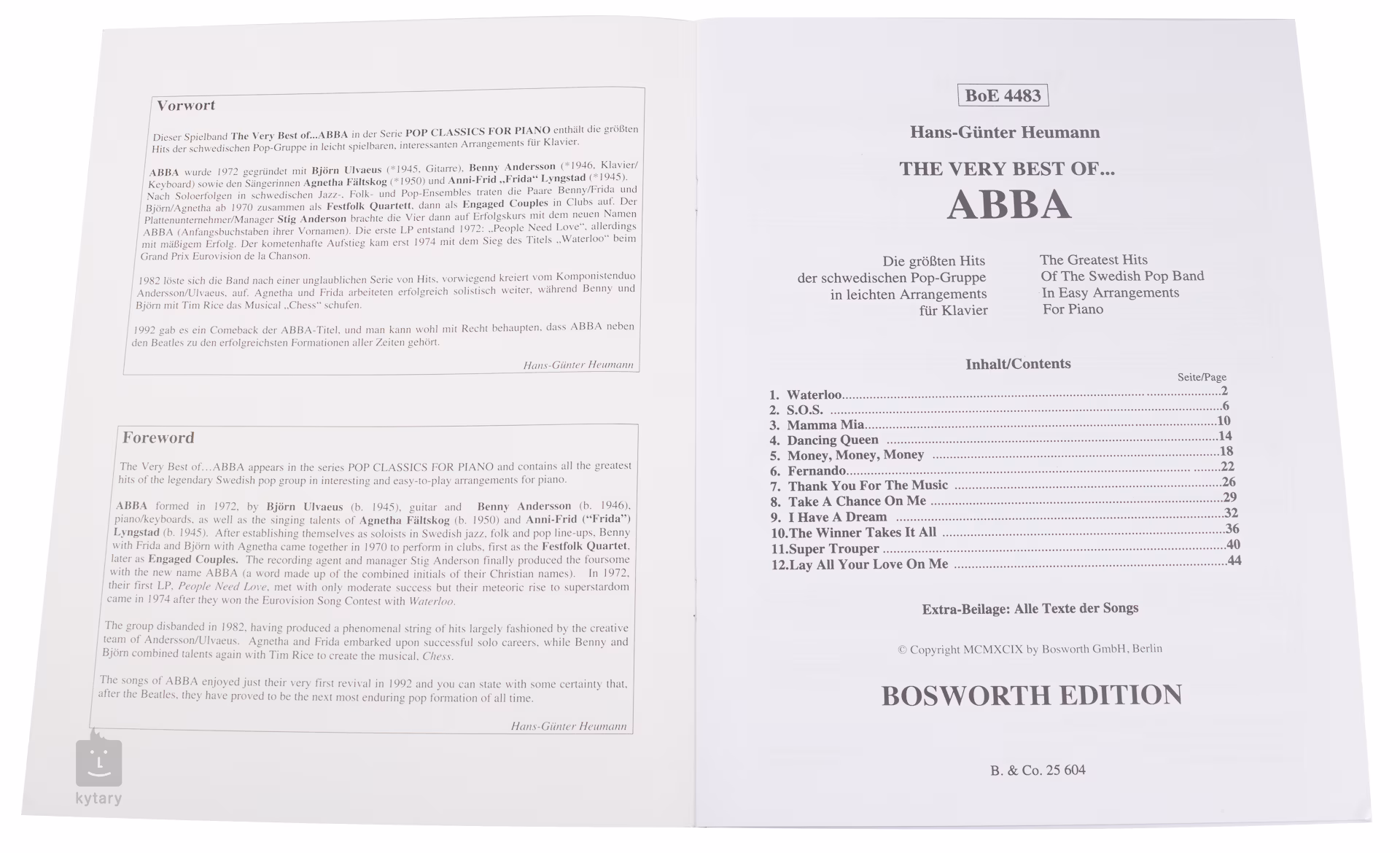 Knihy z edice The Very Best of... nabízí notové záznamy klavírních skladeb doplněných akordovými značkami pro kytaru. Díla jsou přearanžována tak, aby si je mohli zahrát i začínající klavíristé. Tento díl je věnován kapele ABBA.