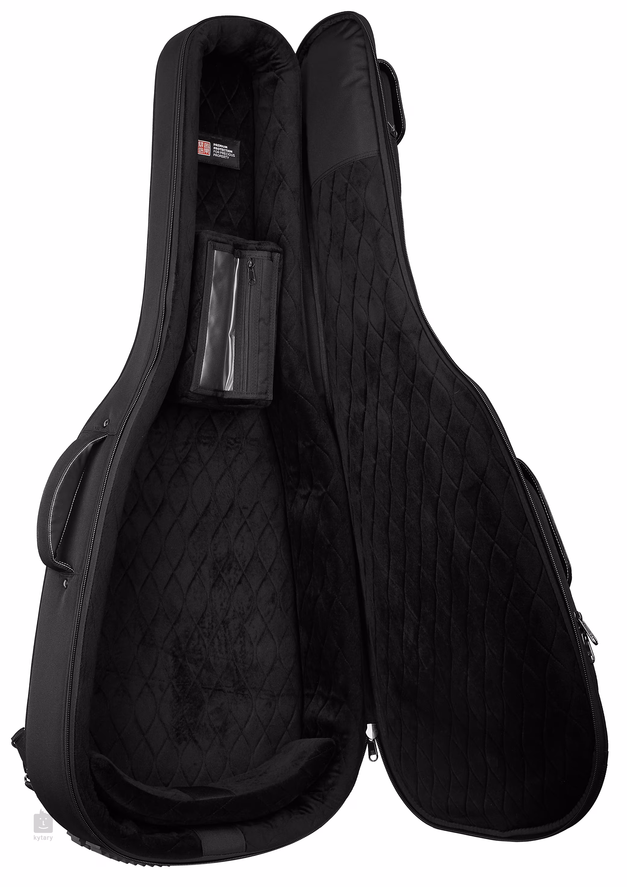 Tyto luxusní softcasy z řady HAN PRO jsou vybaveny až 30 mm silným, extra tuhým polstrováním z vrstvené EPE a polyuretanové pěny, která je velice lehká a spolehlivě ochrání váš nástroj před nárazy. Ta je navíc doplněna o vrstvu z tvrzeného ABS plastu, který nástroji zaručí maximální bezpečí. Vnější strana je vyrobena z nepromokavého polyesteru, který je odolný vůči protržení či opotřebení, vnitřní strana je pak potažena silnou vrstvou měkkého plyše. Na spodní straně najdete pevné vyztužení z PVC, které chrání nejen nástroj, ale také samotný obal před opotřebením. Tento model je vybaven také odnímatelným ochranným polstrováním pro rolnu na popruh a vyztuženou, nastavitelnou podpěrou krku s upevňovacím systémem. Obávat se rozhodně nemusíte ani o kvalitu zipů, ty jsou totiž výrobcem pravidelně testovány a s přehledem zvládnou přes 8000 rozepnutí a zapnutí.