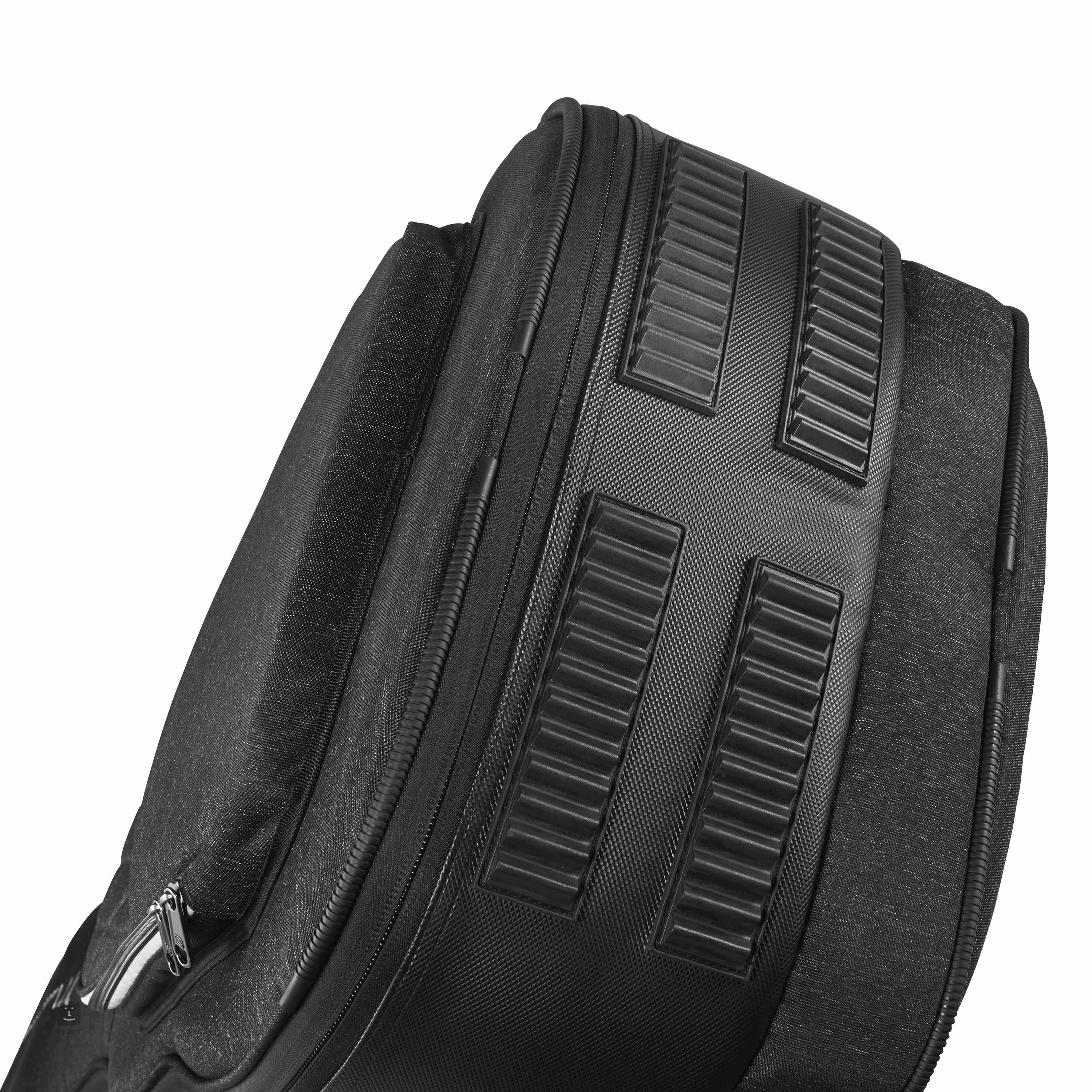 Tyto luxusní obaly z řady TANG30 jsou vybaveny až 30 mm silným, extra tuhým polstrováním z vrstvené EPE a polyuretanové pěny, která je velice lehká a spolehlivě ochrání váš nástroj před nárazy. Vnější strana je vyrobena z nepromokavého a bytelného 900D polyesteru, který je odolný vůči protržení, vnitřní strana je pak potažena silnou vrstvou měkké látky a opatřena nepromokavou úpravou. Na spodní straně najdete pevné vyztužení z PVC, které ochrání nejen nástroj, ale také samotný obal před opotřebením. Tento model je vybaven také odnímatelným ochranným polstrováním pro rolnu na popruh a vyztuženou, nastavitelnou podpěrou krku s upevňovacím systémem. Obávat se rozhodně nemusíte ani o kvalitu zipů, ty jsou totiž výrobcem pravidelně testovány a s přehledem zvládnou přes 8000 rozepnutí a zapnutí.