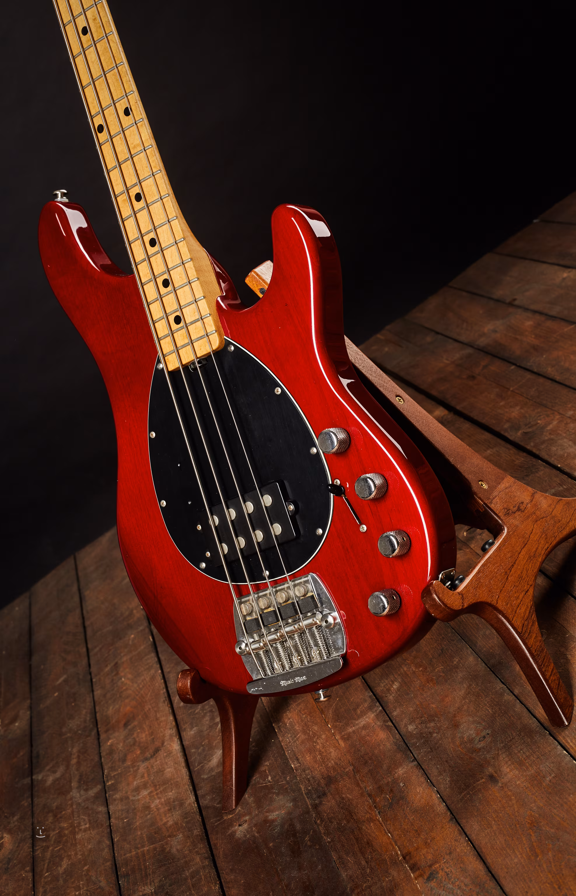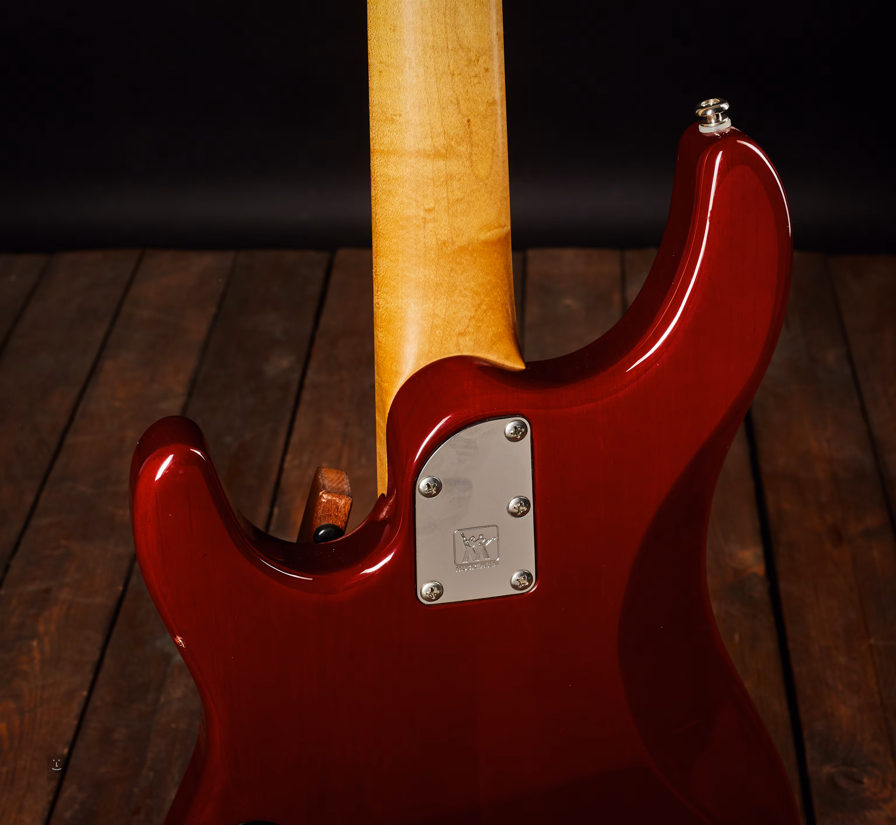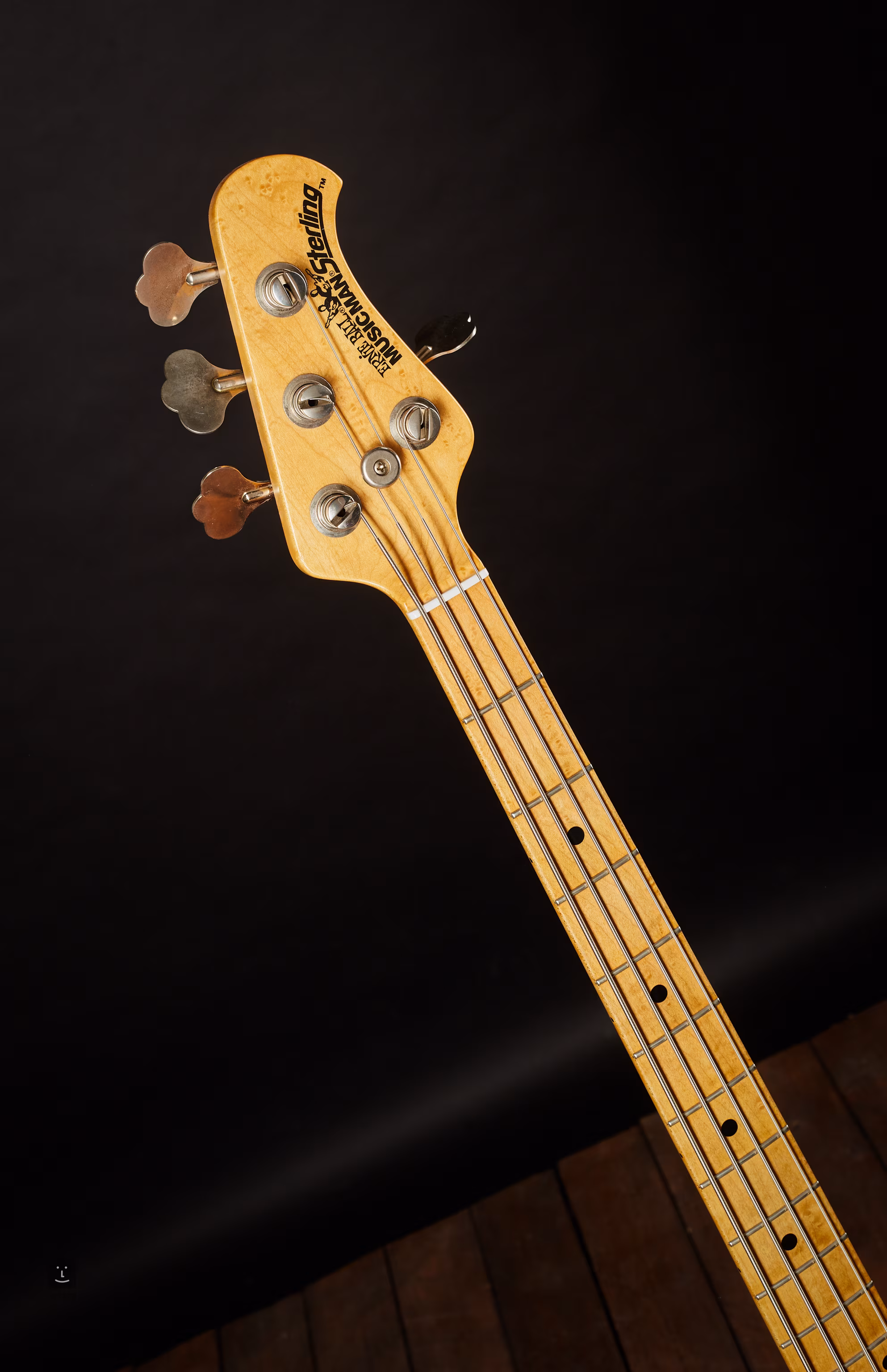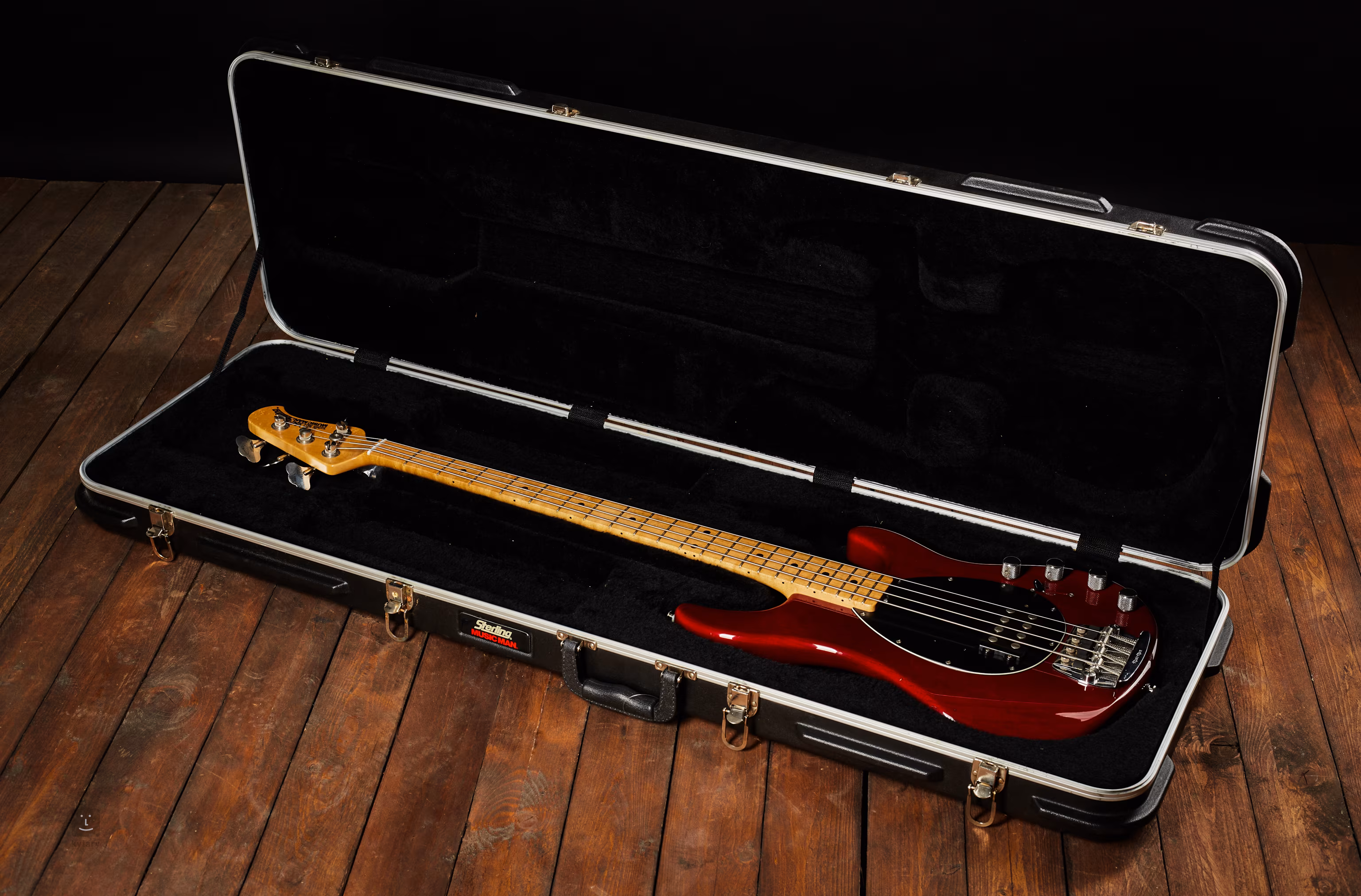 Musicman Sterling, menší bráška Stingraye s drobnějším tělem při zachování dlouhé 34" menzury. Velmi zachovalý nástroj z počátku výroby (začal se vyrábět v r. 1993, tento kousek je z r. 1994) v USA.