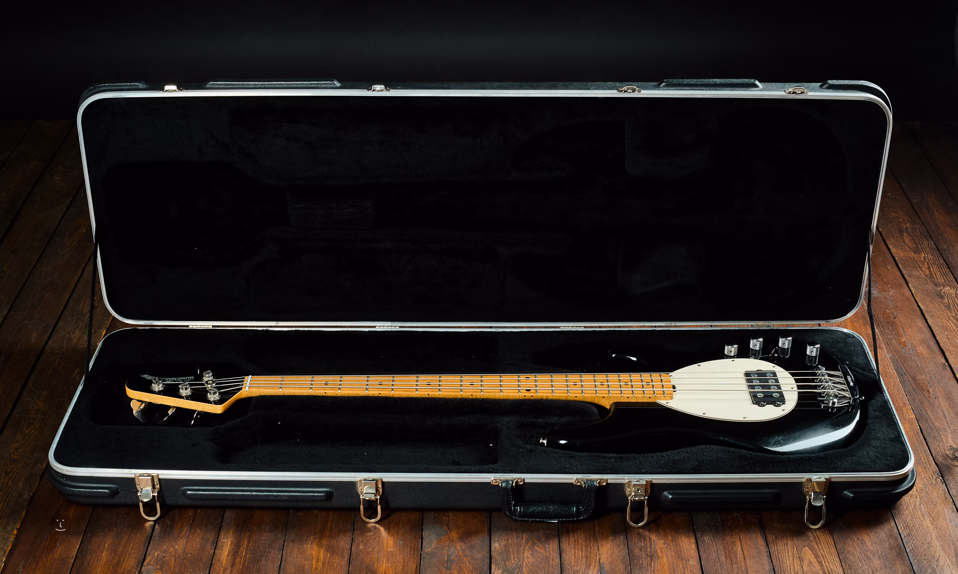 Baskytara nese drobné známky používání. Na těle a na hlavici je několik menších škrábanců a velmi drobné ťukance. Nástroj je ve 100% funkčním stavu a prodává se včetně původního kufru Music Man.