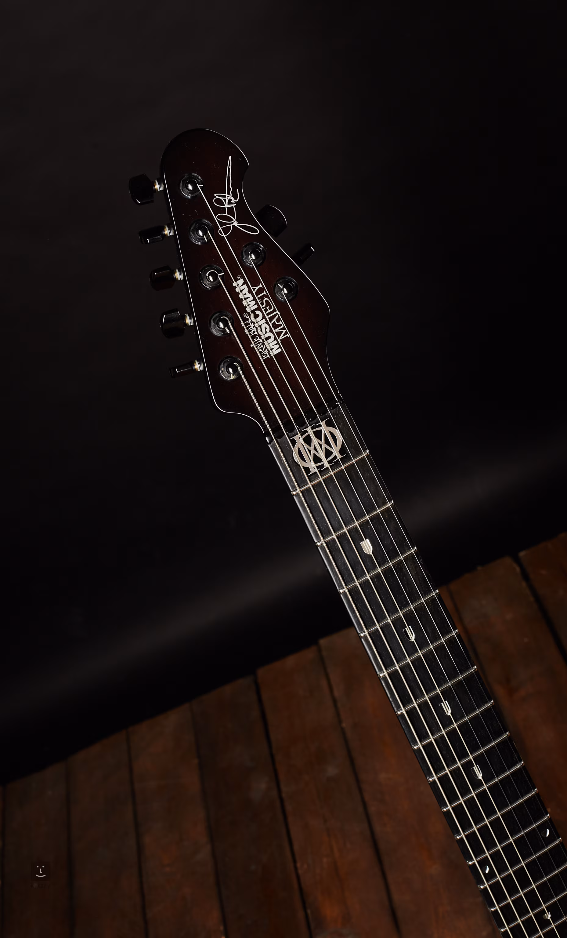 Ikonická kytara, která hráče vyzívá k technické dokonalosti, protože sedmistrunka Majesty Monarchy technicky dokonalá je. Nástroj se prodává včetně originálního příslušenství, je používaný, ale v perfektním stavu. Uvnitř je druhá, vylepšená generace elektroniky Music Man Majesty.