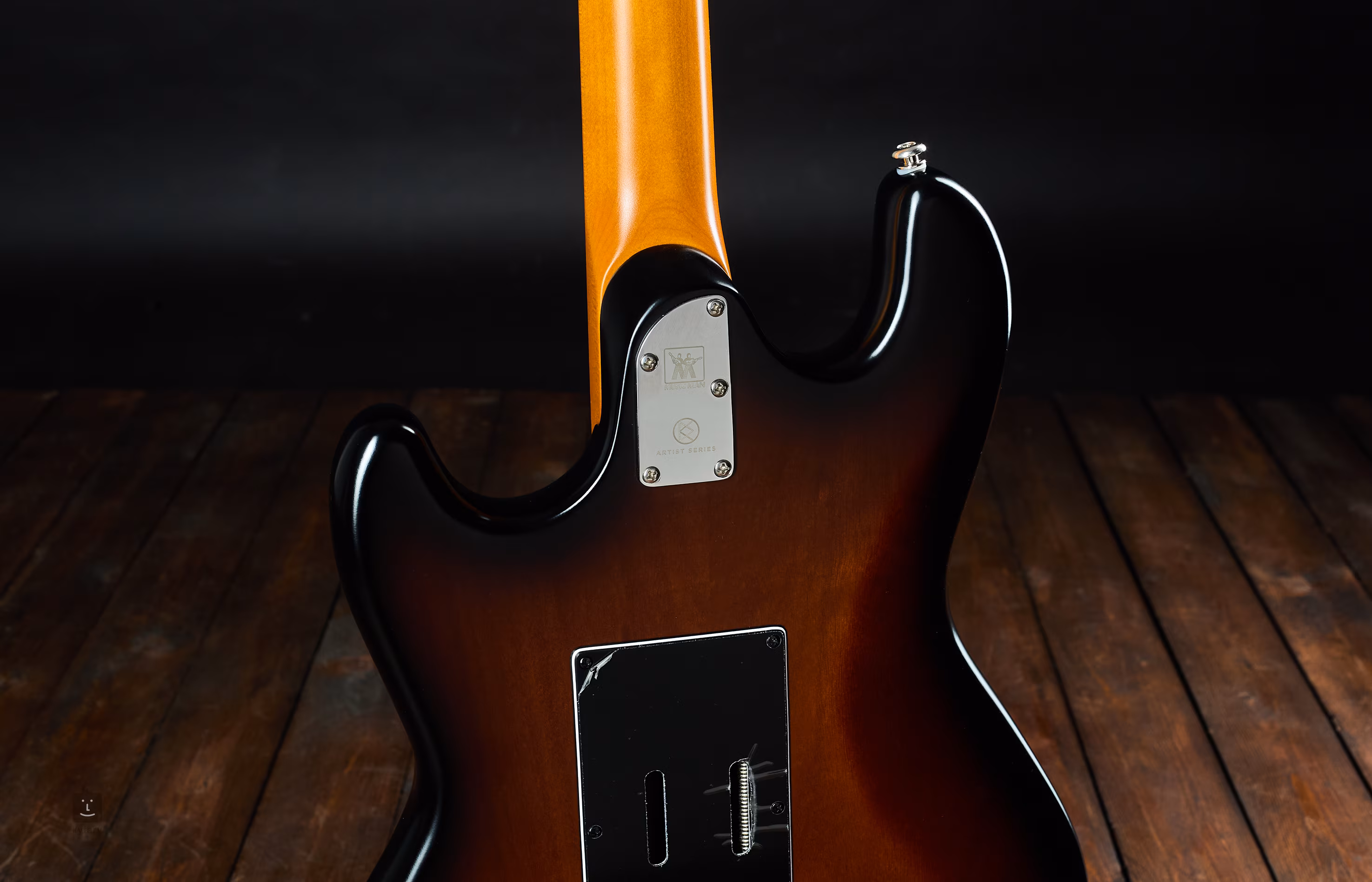 Tělo nástroje je vyrobené z dřeva okoume, krk je javorový. Hmatník má univerzální raidus 10" s 22 pražci z nerezové oceli. Kobylka je s moderním tremolem, které má vintage ohýbaná sedla. Speciální knoflík dole na pickguardu má za funkci vyřadit při stisknutí obvod ovládacích prvků.