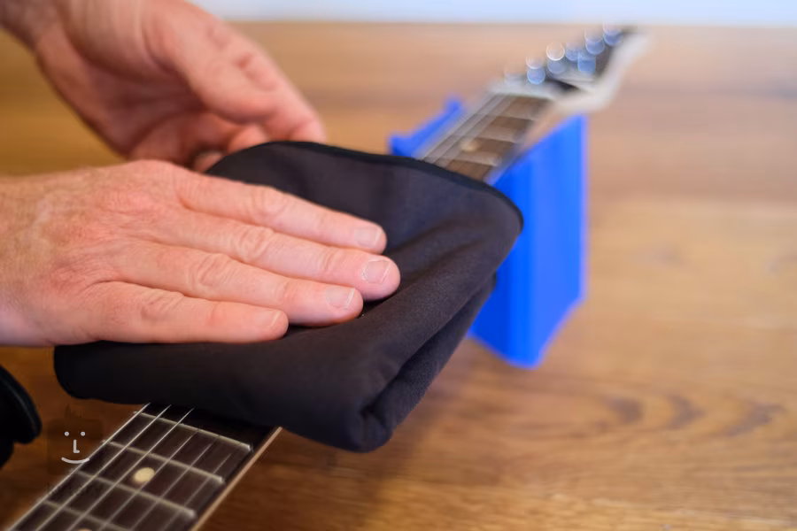 Na druhé straně najdete semišový povrch z extrémně jemných mikrovláken, který lze použít zejména k čištění strun. Tento povrch je designován pro odstraňování potu, mastnoty a nečistot, které výrazně snižují životnost strun a jejich zvuk.