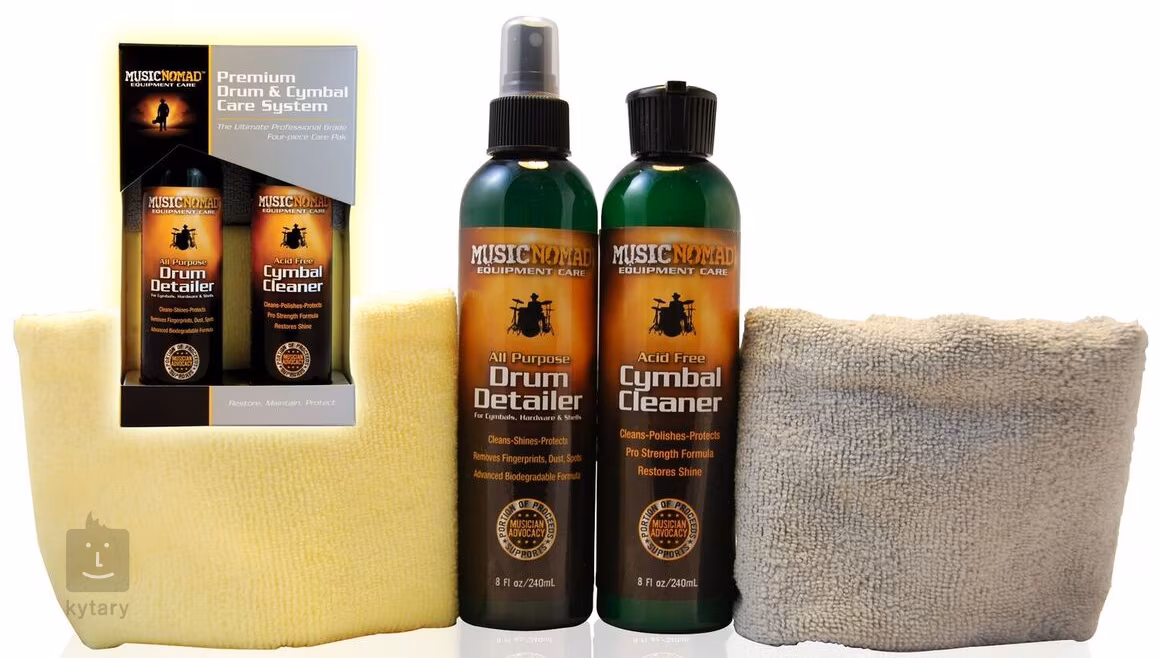 Kompletní čistící sada obsahuje všechny oblíbené produkty Music Nomad v jednom praktickém balení. Vaše bicí a hardware dokonale vyčistí univerzální přípravek Drum Detailer, činelům zase dodá oslňující lesk Cymbal Cleaner. Součástí balení jsou i dvě jemné mikrovláknové utěrky o velikosti 30 x 40 cm, se kterými snadno udržíte vaše bicí v perfektním stavu.