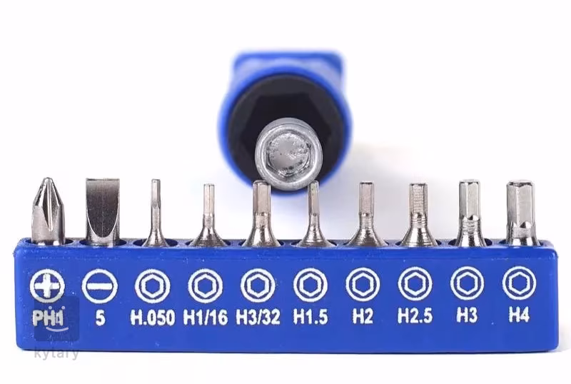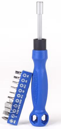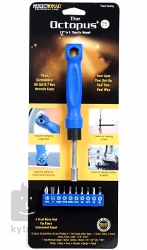 Praktický šroubovák k údržbě vašeho nástroje, aparatury a efektů s rozsáhlou sadou bitů. Součástí balení je jeden křížový a jeden plochý bit, osm imbusových klíčů (0,05", 1/16", 3/32", 1,5 mm, 2 mm, 2,5 mm, 3 mm, 4 mm) a sedm šestihranných očkových klíčů (10 mm, 12 mm, 14 mm, 1/4", 2x 1/2” a 7/16"). Díky této rozsáhlé sadě snadno utáhnete veškeré šroubky, vstupy, potenciometry, ladicí kolíčky a další součástky vaší kytarové výbavy.