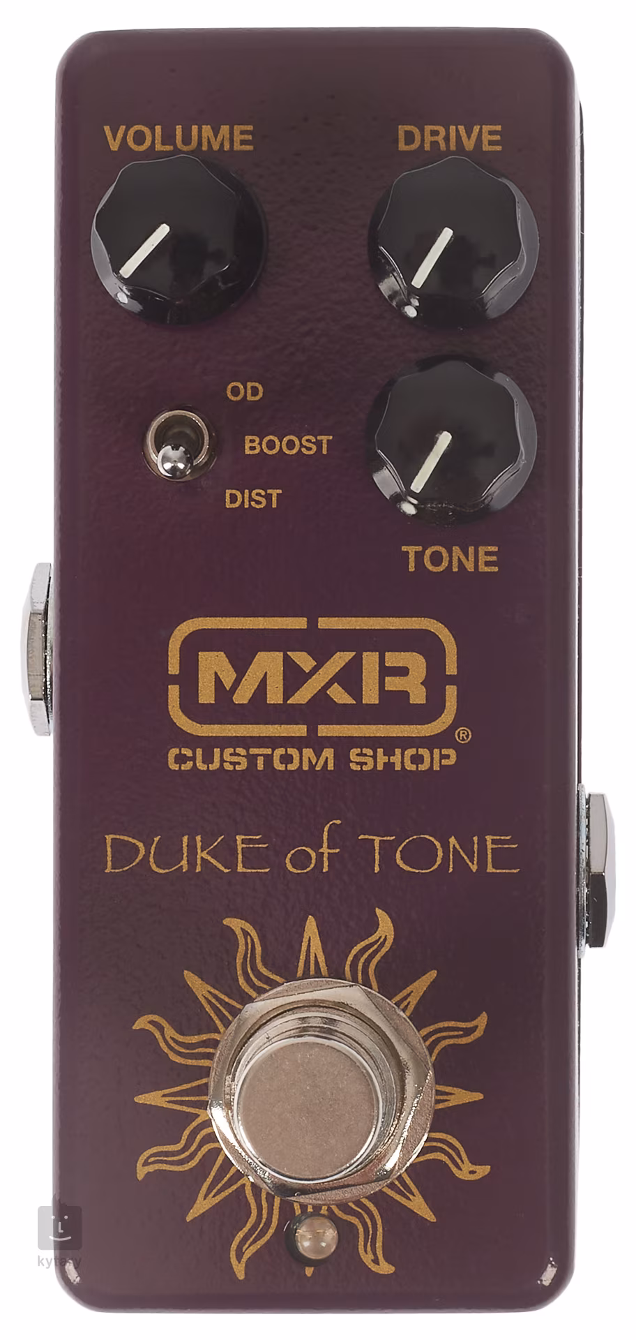 Dunlop MXR Duke of Tone Overdrive je kompaktní pedálový efekt vytvořený ve spolupráci s výrobcem pedálů Analog Man. MXR Duke of Tone je overdrive efekt určený všem muzikantům, co chtějí dodat jejich kytarovému zvuku trochu vřelosti, drajvu a zároveň nechtějí přijít o krásně přirozený feel a tón jejich kytarového aparátu a blyštivé výšky. Klasické ovladače (výstupní hlasitost, EQ, drive) doplňuje třípolohový přepínač clippingu, kdy volíte mezi jemnějším clippingem a kompresí (OD), čistým zesílením signálu bez clippingu (Boost) nebo tvrdším clippingem a výraznější kompresí (Dist), tj. větším zkreslením.