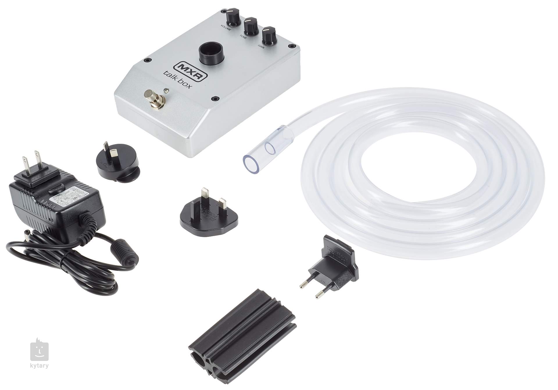 Dunlop MXR Talk Box je unikátní efekt, který dokáže „rozpovídat“ vaši kytaru. Jeho zvuk můžete znát z mnoha skladeb funkové či rockové historie. Už obsah balení s talk boxem, trubičkou a klipem na mikrofonní stojan napovídá, že bude talk box fungovat trochu jinak než standardní pedály. Signál po aktivaci pedálu totiž nejde výstupem do aparátu (ten se při aktivaci zatlumí), ale trubičkou ven do vašich úst. Z toho důvodu je třeba být blízko mikrofonu, který signál snímá a posílá do PA.
