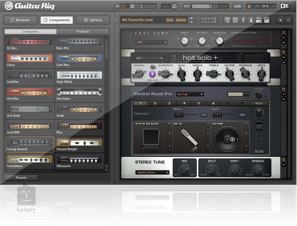 Guitar Rig 5 Pro je kompletní softwarové řešení pro vynikající osobitý zvuk kytaristů, s větším počtem zesilovačů, více efekty a tvůrčím potenciálem, než kdy dříve. To vše v intuitivních virtuálních efektech a racku.