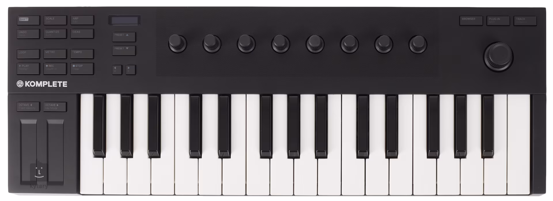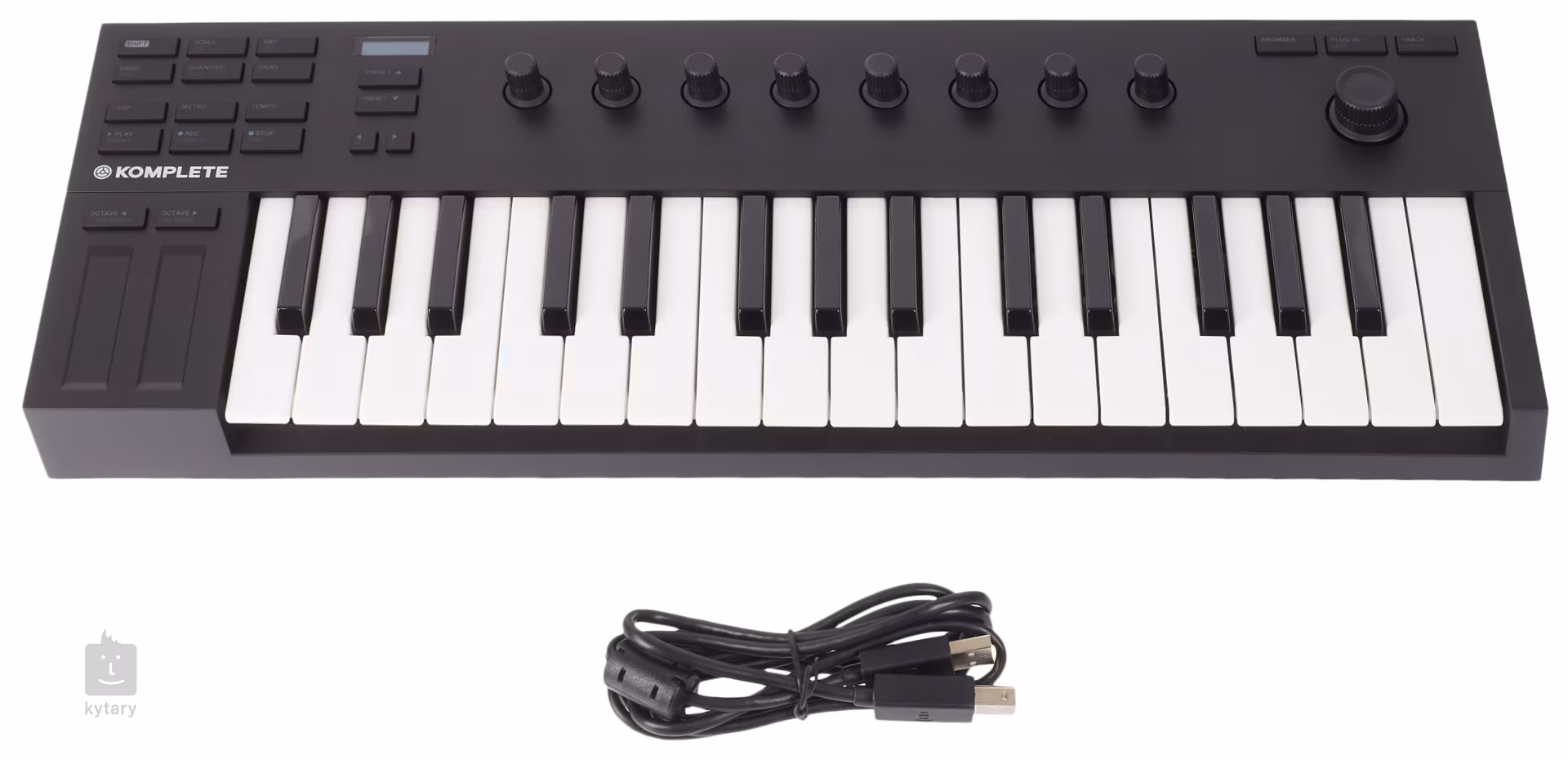 Native Instruments Komplete Kontrol M32 nabízí 37 mini kláves ve stylovém a tenkém těle, což z něj dělá ideální MIDI kontrolér do domácího studia nebo na cesty. Vejde se vám do batohu a otevře vám cestu k pohodlnému ovládání virtuálních nástrojů z knihoven Native Instruments a NKS i vašeho DAW. Součástí je i bohatá softwarová výbava s Ableton Live Lite 10 a balíkem syntezátorů, bicích i smyček. K dispozici je celkem 37 miniaturních kláves, modulační a pitch strip, otočné ovládače, OLED displej i funkční tlačítka pro rychlý přístup k důležitým funkcím. Ať už vás inspirace zastihne kdekoliv, s M32 jí hravě zkrotíte a nápady přivedete rychle k životu.