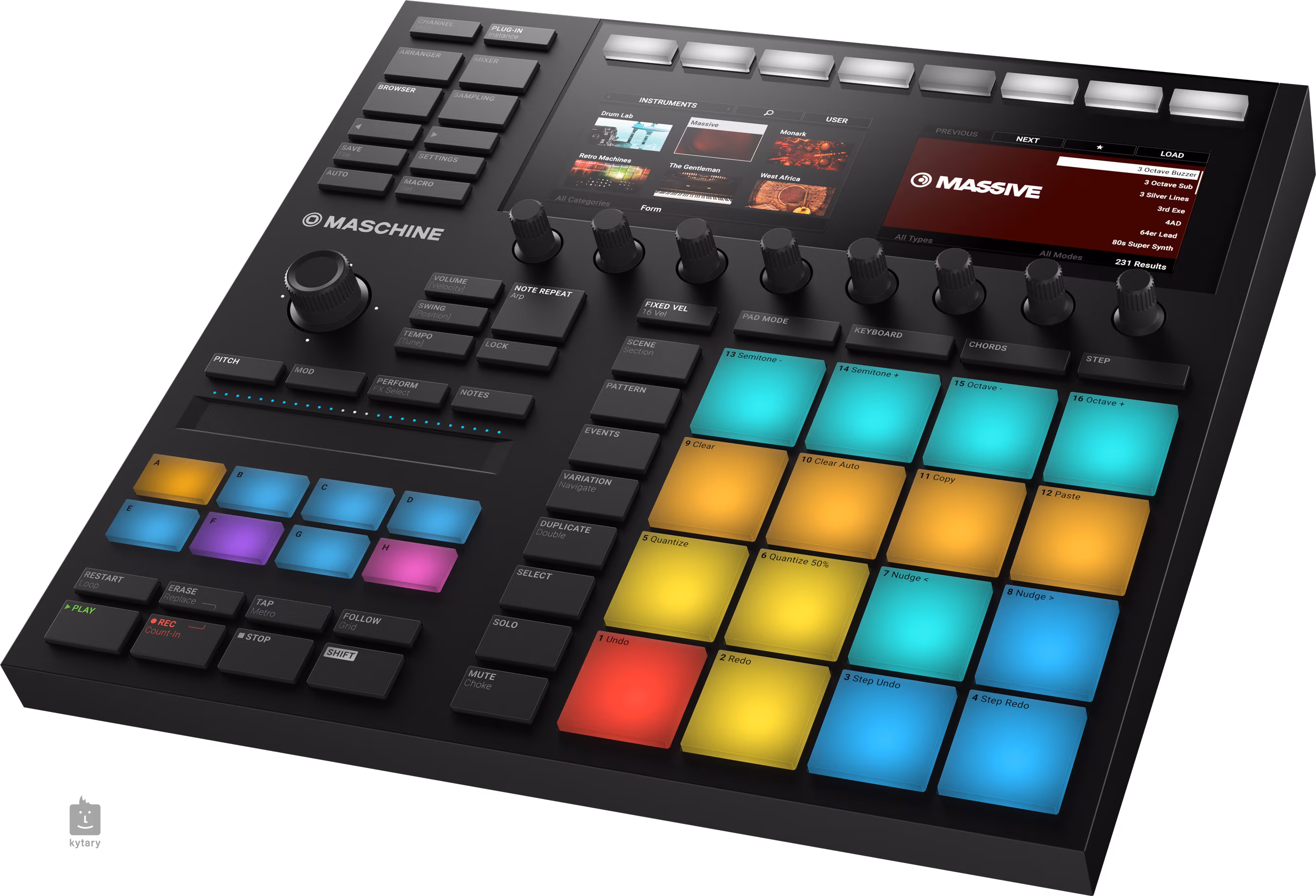 Hlavní novinkou jsou větší pady, které nabízejí více prostoru pro flame nebo expresivní přechody. Díky tomu budou vyhovovat jak začátečníkům, tak pokročilým, technickým hráčům. Přehled o všech parametrech, zvucích a nástrojích zajišťuje dvojice displejů. Díky nimž máte vše neustále pod kontrolou - například úpravu samplů. Rychlé workflow zajišťuje řada ovládadcích prvků přímo na předním panelu. Například osm knobů pro rychlou úpravu parametrů, čtyřstranný enkodér, tlačítko pro rychlou repetici not nebo save a open pro ukládání a otevírání projektů, aniž byste se museli dotknout myši.