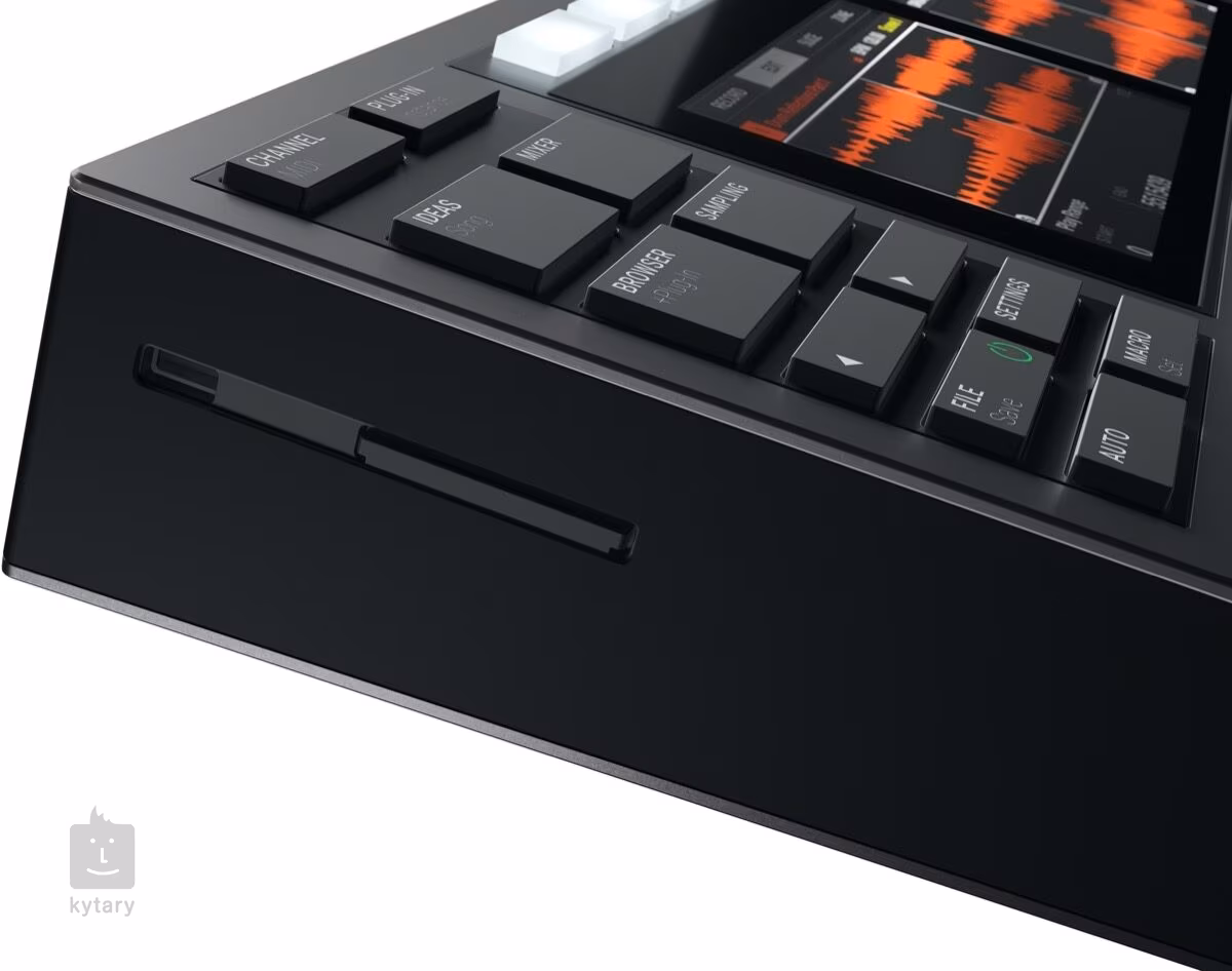 Rychlé workflow zajišťuje řada ovládacích prvků přímo na předním panelu. Například osm knobů pro rychlou úpravu parametrů, čtyřstranný enkodér, tlačítko pro rychlou repetici not nebo save a open pro ukládání a otevírání projektů, aniž byste se museli dotknout myši.