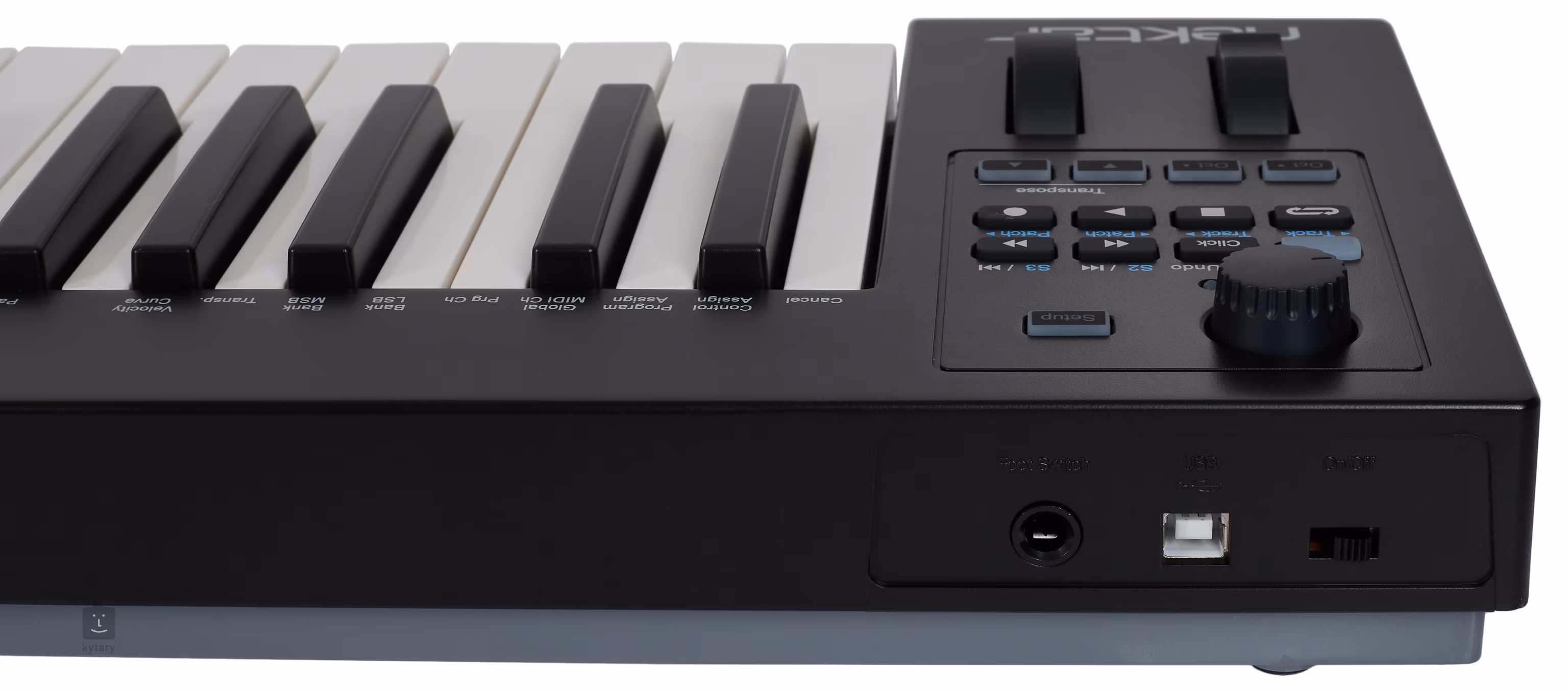 Nektar Impact GX61 disponují 61 citlivými klávesami s možností nastavení čtyř dynamických režimů. Tlačítka Octave/Transpose vám umožní využít celý rozsah klasického klavíru. Ovládací panel potom obsahuje otáčivý potenciometr Volume a tlačítka na ovládání softwarů, takže už nebudete potřebovat myš ani klávesnici, vše zvládnete přímo z kláves. Zadní panel obsahuje USB výstup do PC nebo laptopu a Jack 6,3 mm TS pro připojení dalšího MIDI zařízení. Součástí balení je DAW software BITWIG 8-Track, který vás uvede do světa digitálních nástrojů a seznámí vás se všemi možnostmi MIDI zařízení. Klávesy je možné připojit i do iOS zařízení, takže je možné hrát i prostřednictvím iPadu, do kterého si stáhnete hudební aplikaci podporující MIDI.