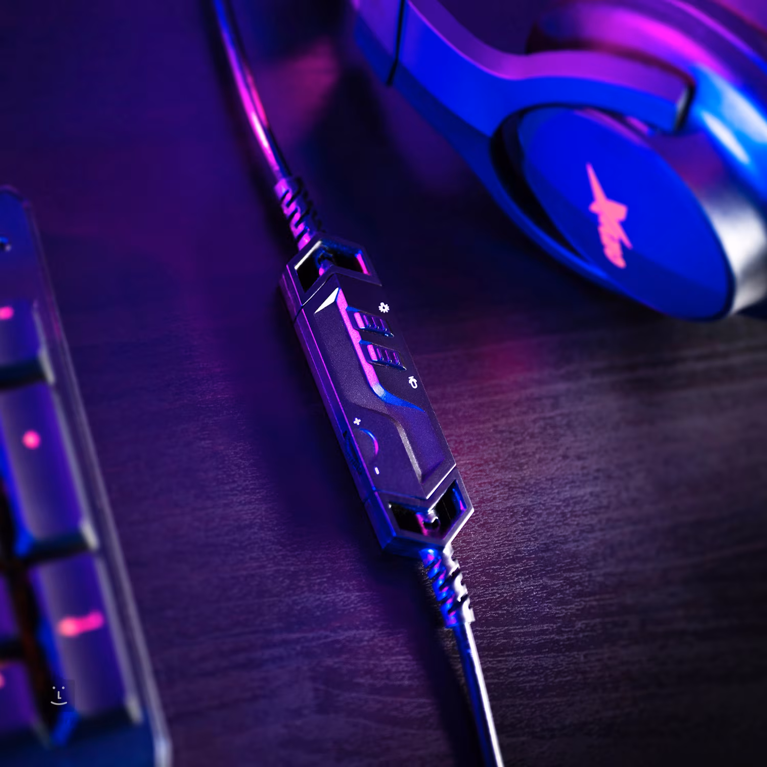 Při rychlé hře není čas dívat se do klávesnice a přidat na hlasitosti, proto se vám bude hodit ovládání přímo na kabelu. Díky němu budete mít ve vteřině pod kontrolou hlasitost, ztlumení mikrofonu, podsvícení sluchátek nebo si s jeho pomocí můžete přepínat skladby. Ovládání tak už nemusíte zdlouhavě hledat v počítači!