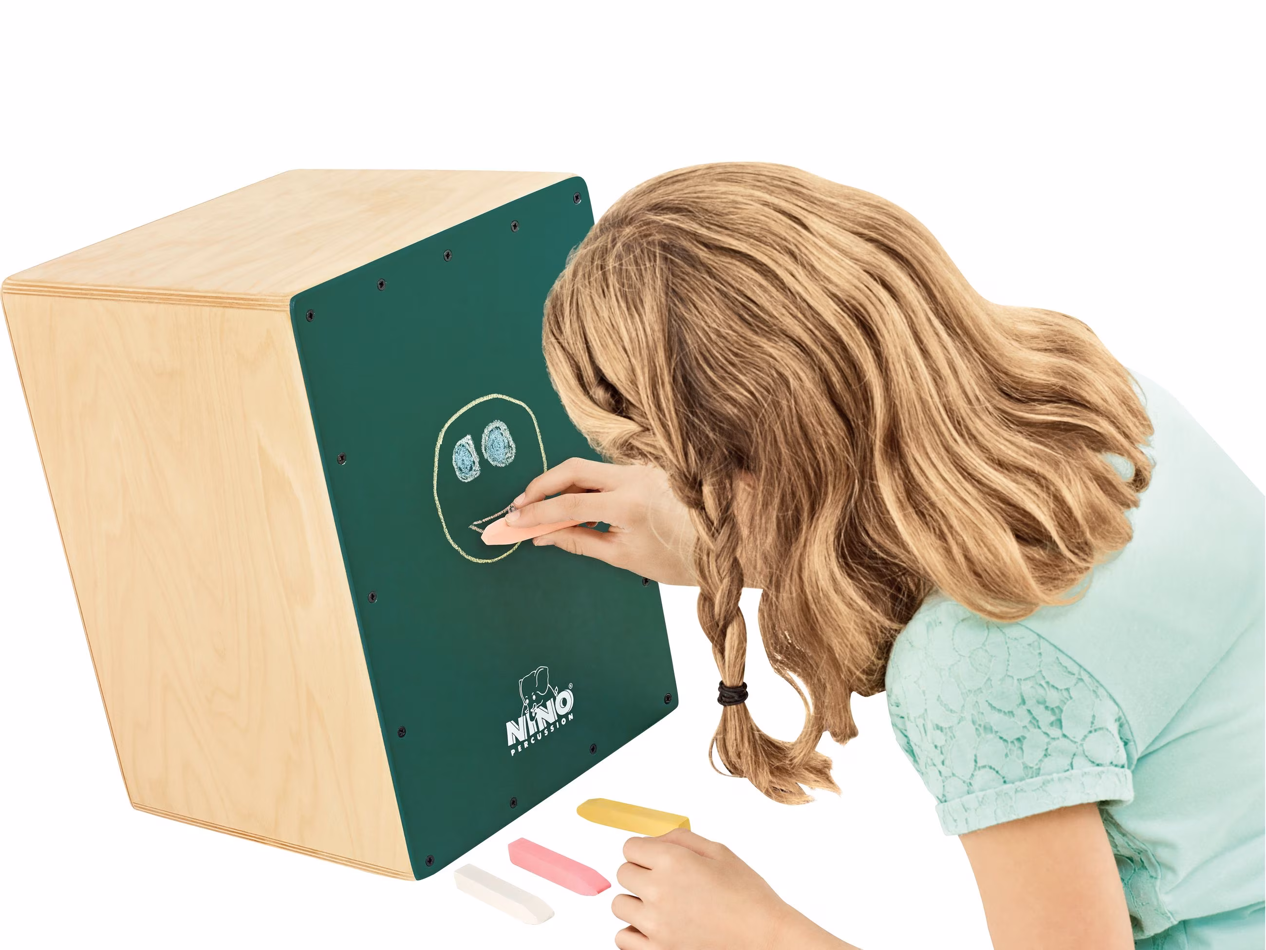 S tímto cajonem si užijete spoustu zábavy. Nástroj má všechny vlastnosti běžného cajonu. Vyrobený je z břízy a nechybí ani vnitřní struníky. Dobře poslouží jako pomůcka pro seznámení se základy rytmiky. Přední deska má kromě perkusivní funkce využití jako tabule, na kterou můžete různě kreslit a svůj nástroj si tak zkrášlit. Křídy 7 různých barev jsou součástí balení.