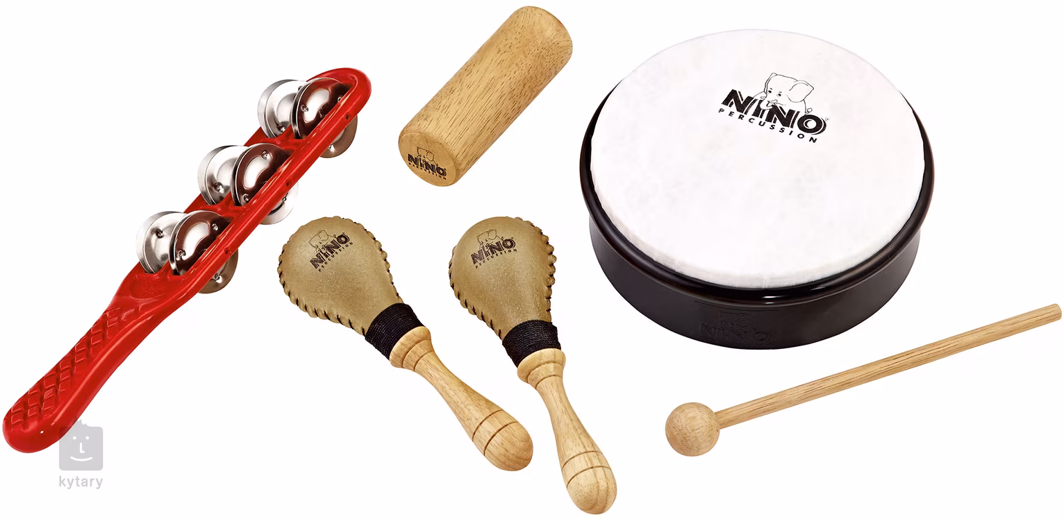 Tato perkusní sada obsahuje vše, co potřebujete k obohacení vaší hudební produkce o rytmický doprovod. Obsahuje bubínek s paličkou, větší dřevěný shaker, maracas a jingle stick. Dodává se včetně obalu.
