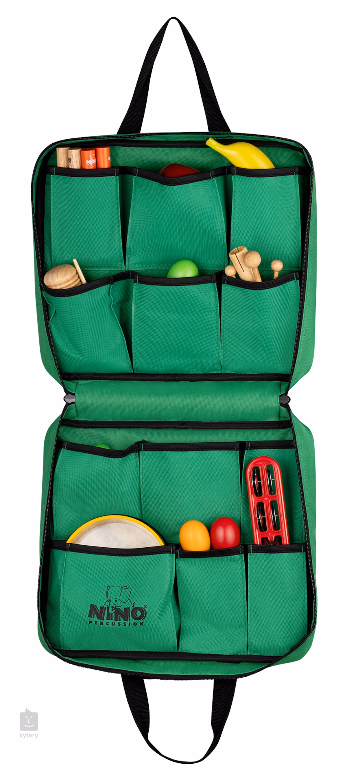 Perkusní sada NINOSET16 značky Nino Percussion obsahuje čtveřici různobarevných rumbakoulí/maracas (NINO569), čtveřici různobarevných shakerů (NINO540), dva páry dřevěných claves v natural provedení a oranžové barvě (NINO502), dřevěný rytmický nástroj woodpecker/datel (NINO519), dřevěný guiro shaker (NINO520), Apple Shaker (NINO596), Banana Shaker (NINO597), tamburínu/jingle stick (NINO13R), 1x 6" dětský bubínek (NINO4Y) a přepravní obal.