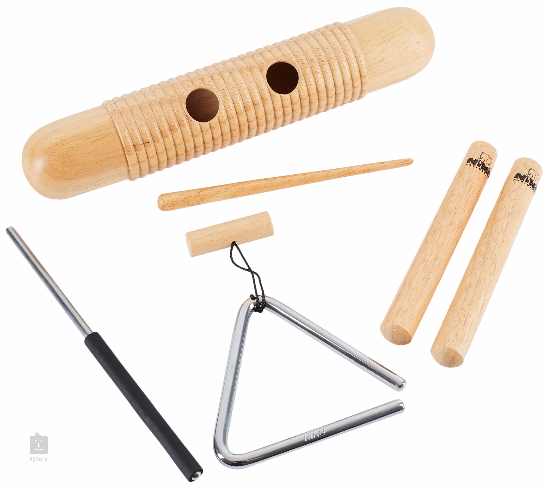 Tato perkusní sada obsahuje vše, co potřebujete k obohacení vaší hudební produkce o rytmický doprovod. Obsahuje dva páry shakerů s různými designy, triangl, ozvučné dřívko, claves a caxixi. Vhodné pro školky, školy i domácnosti. Dodává se včetně obalu.