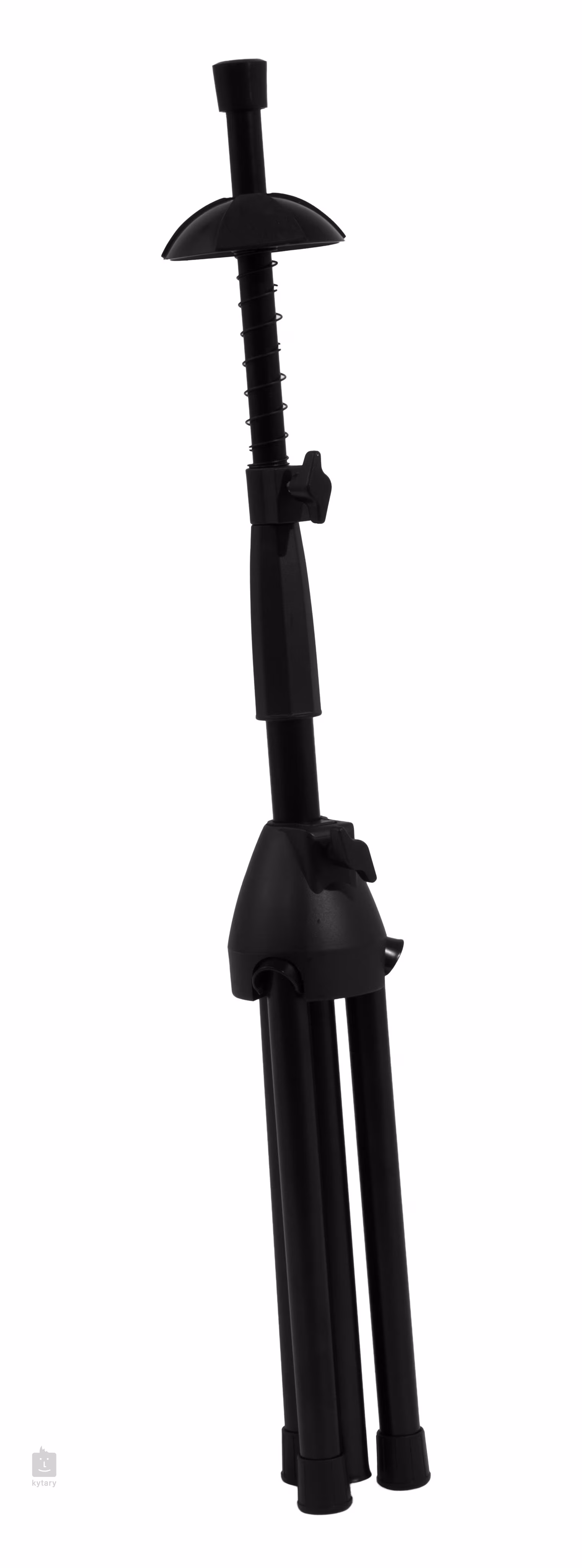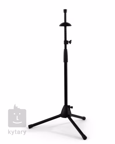 Ocelový stojan pro trombon s podstavcem. Části přicházející do styku s nástrojem jsou polstrovány a zabraňující tak poškození trombonu.