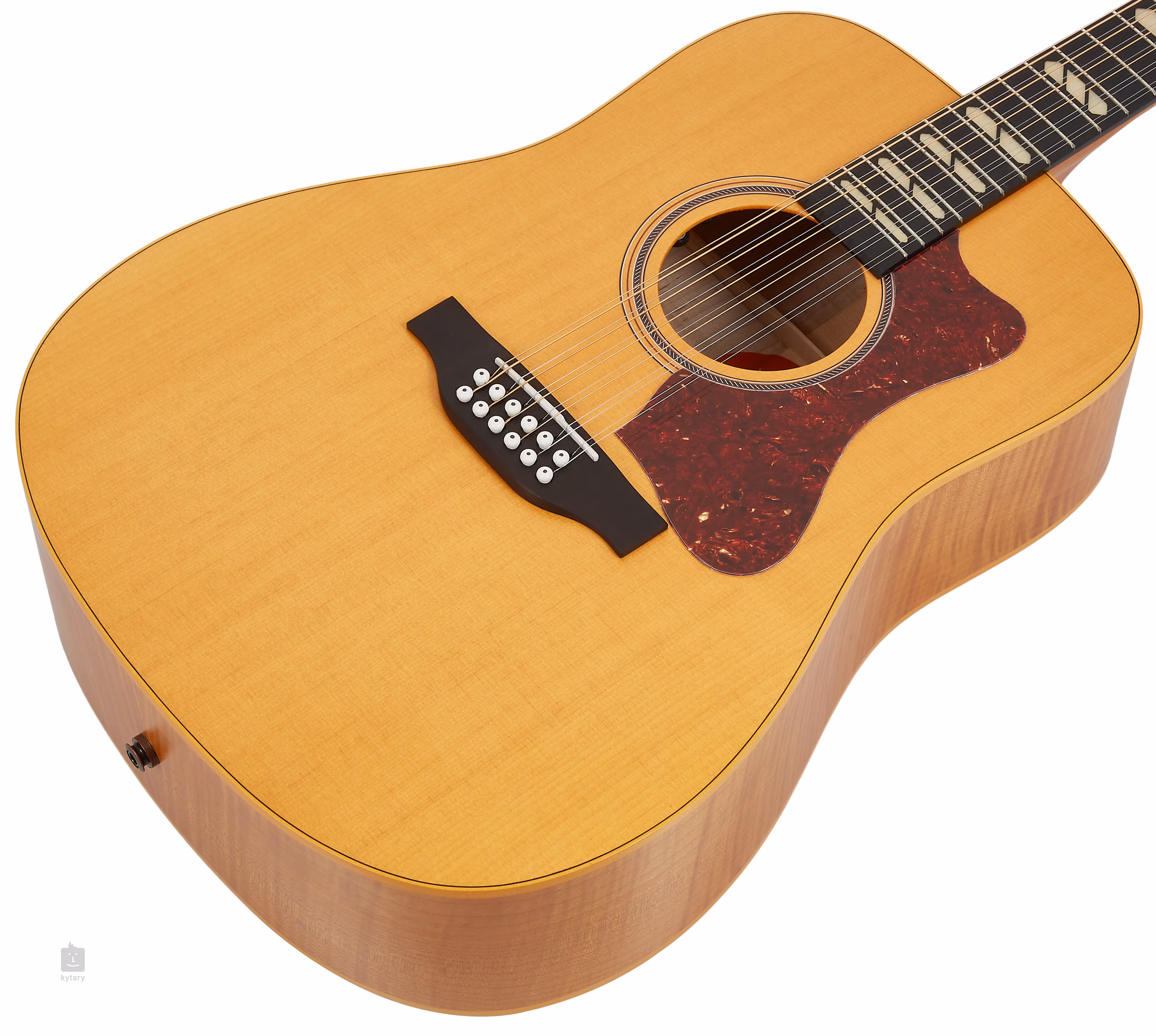 Přední deska dvanáctistrunné elektroakustické kytary B50 12 Natural SG Element je zhotovena z cedru, zadní deska a luby z fládrovaného javoru, jehož kresba dřeva poskytuje kytaře exkluzivní vzhled. K javorovému krku je přilepen hmatník z moderního kompozitního materiálu richlite osazený jednadvaceti pražci.