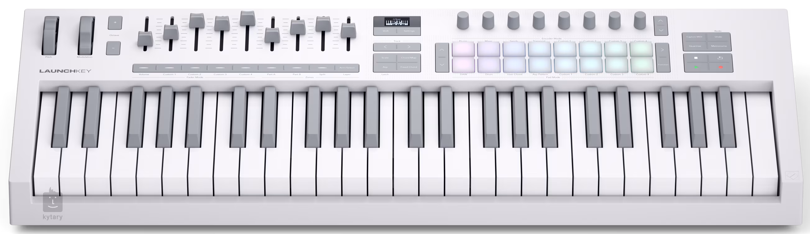 Novation Launchkey 49 je výkonný DAW kontroler s polovyváženou waterfall-type klaviaturou, osmi kontinuálními enkodéry, devíti fadery a 16 tlakově citlivými pady pro finger drumming a spouštění klipů. Kontroler také obsahuje kreativní režimy Chord a Scale, které spolupracují s OLED displejem, abyste se snadno drželi tóniny.