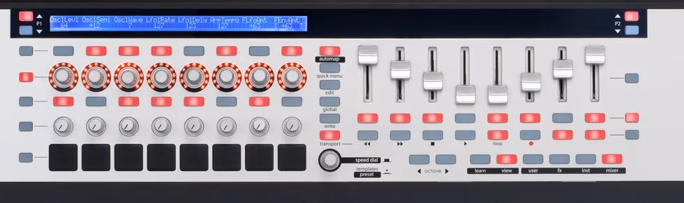 Všechny modely mají stejný počet kontrolerů, ke kterým díky technologii Automap přiřadíte libovolný externí plug-in a jeho vlastnosti.LCD display zobrazuje informace o probíhajících procesech včetně názvů a hodnot jednotlivých knobů, faderů a tlačítek. Podsvícené LED prstence okolo otočných ovladačů vám i v temných prostorách spolehlivě poskytnou informace o nastavení jednotlivých filtrů, podsvícená tlačítka zvýrazňují zamutované tracky. Každý knob, fader nebo tlačítko těchto Midi/USB kláves disponuje funkcí citlivosti na dotyk. Po stlačení zvoleného kontroleru se na LCD displayi okamžitě objeví informace o celkovém nastavení ovladačů, se kterým díky této funkci nemusíte hýbat.