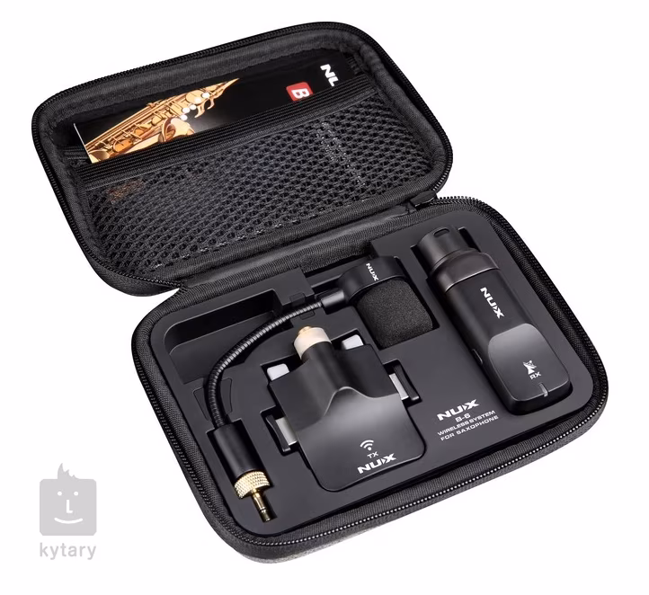 Sada se skládá z vysílače, přijímače a kondenzátorového mikrofonu na husím krku. Vysílač je vybaven flexibilní gumovou svorkou, která slouží k bezproblémovému uchycení mikrofonu na saxofon. Součástí balení je také praktické polstrované pouzdro s funkcí napájení, v němž můžete dobíjet přijímač i vysílač zároveň. Integrovaná baterie vydrží na jedno nabití minimálně 4 hodiny plynulého provozu.