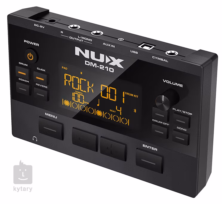 NUX DM-210 je elektronická bicí souprava pro začátečníky, která nabízí kompaktní rozměry, realistický herní pocit a široké možnosti tréninku. Díky plně síťovaným blánám (mesh heads) a samostatnému kopáku poskytuje přirozenější odezvu při hře a zároveň umožňuje tiché cvičení bez rušení okolí.