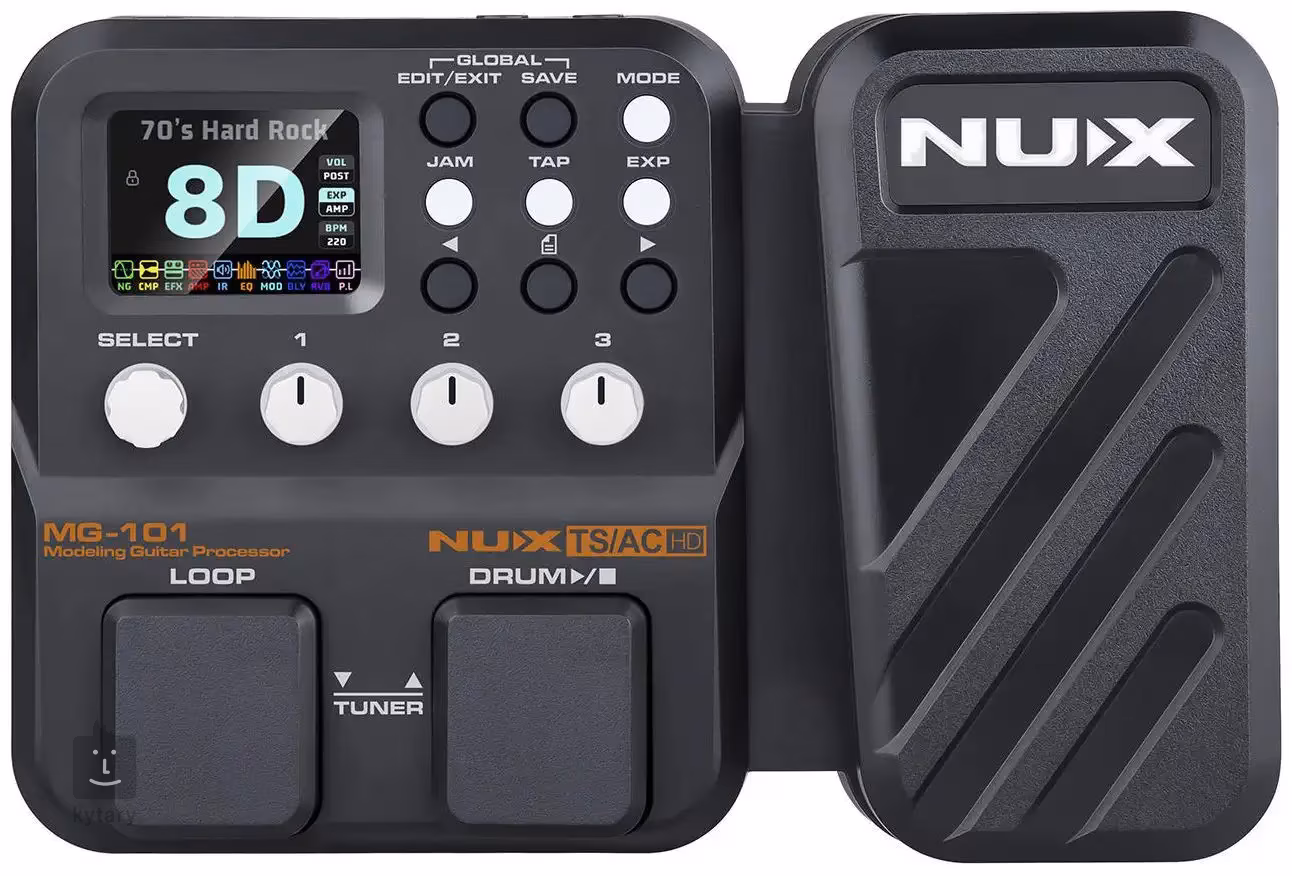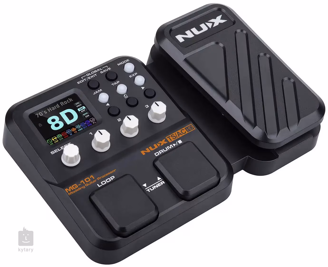 Tento kompaktní multiefekt MG-101 od společnosti NUX v sobě ukrývá vše, co potřebujete, abyste vytvořili svůj vysněný kytarový tón. Umožní vám volit z 25 proslulých kytarových aparátů, čtyř mikrofonů, tří mikrofonních pozic a celé řady kytarových efektů, mezi nimiž nechybí různé druhy zkreslujících, modulačních a ambientních efektů. Zkrátka vše, co potřebujete, abyste vytvořili celou signálovou cestu od zesilovače a repráku až po efektový řetězec. Díky tomu můžete zařízení zapojit přímo do PA systému, FRFR reproboxu, mixpultu nebo do sluchátek a získat excelentní kytarový tón bez nutnosti použití dalších efektů, kytarových komb nebo jiných zařízení.