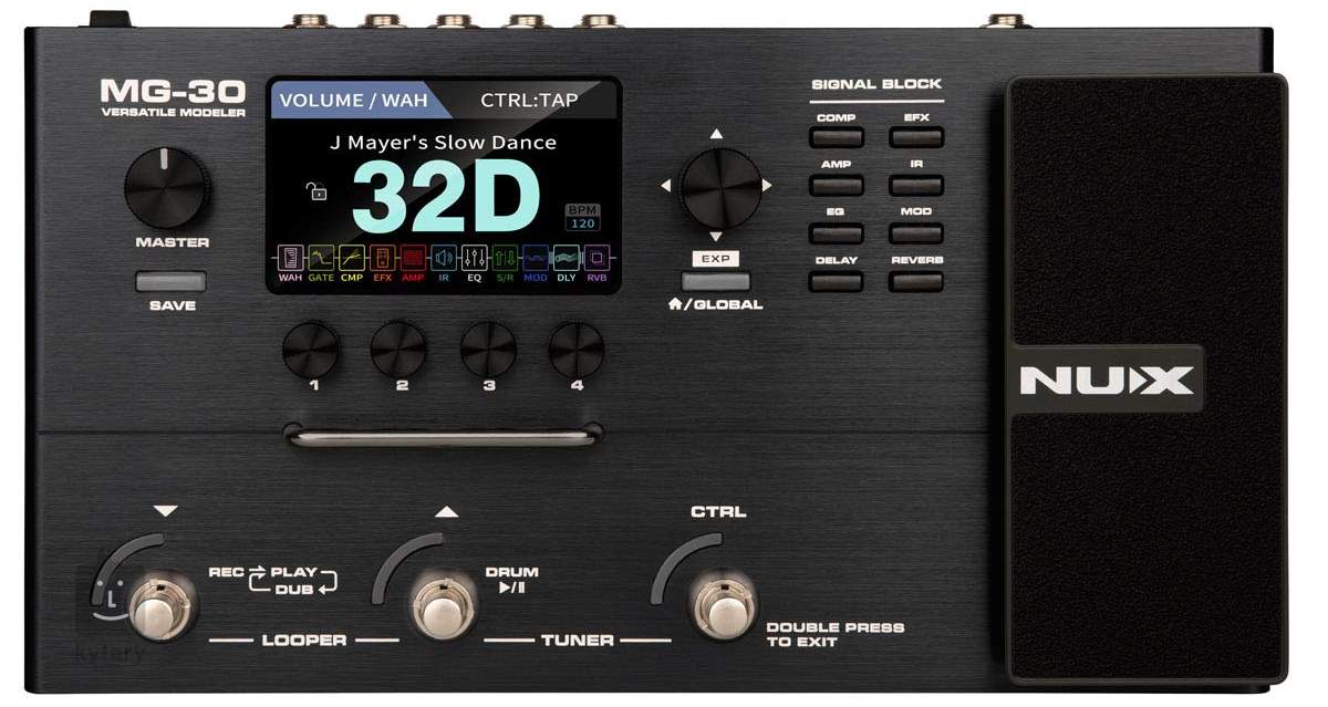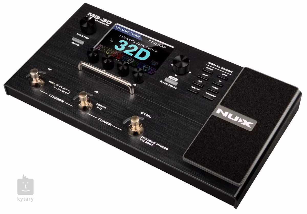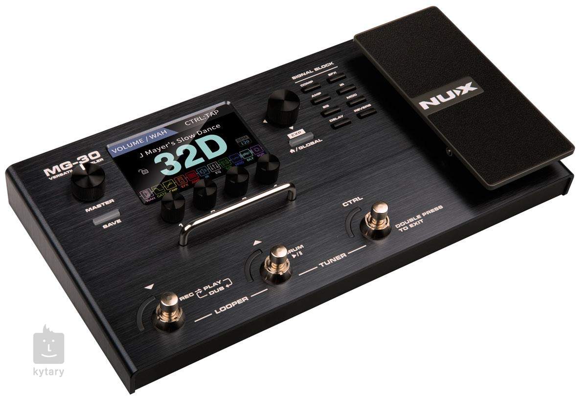MG-30 je všestranný kytarový multiefekt/modeler značky NUX s duálním DSP procesorem, dvoukanálovými 32-bit AD/DA převodníky, IRs s rozlišením 1024 samplů a ultra nízkou latencí, nejnovější modelingovou technologií TSAC-HD (White Box) simulující odezvu klasických kytarových aparátů s analogovými obvody, jedenácti nezávislými signálovými bloky s možností paralelního post efx routingu, přívětivým uživatelským rozhraním s čtyřpalcovým barevným LCD displejem, USB rozhraním pro firmware updaty, nahrávání a propojení s editačním software NUX QuickTone, možností nahrání vlastních IRs, vestavěnou sekcí bicích doprovodů, looperem, vestavěnou ladičkou, expression pedálem a flexibilními I/O s efektovou smyčkou, mono/stereo výstupem, sluchátkovým výstupem a Aux In pro externí multimediální zařízení. To vše za velmi příznivou cenu.