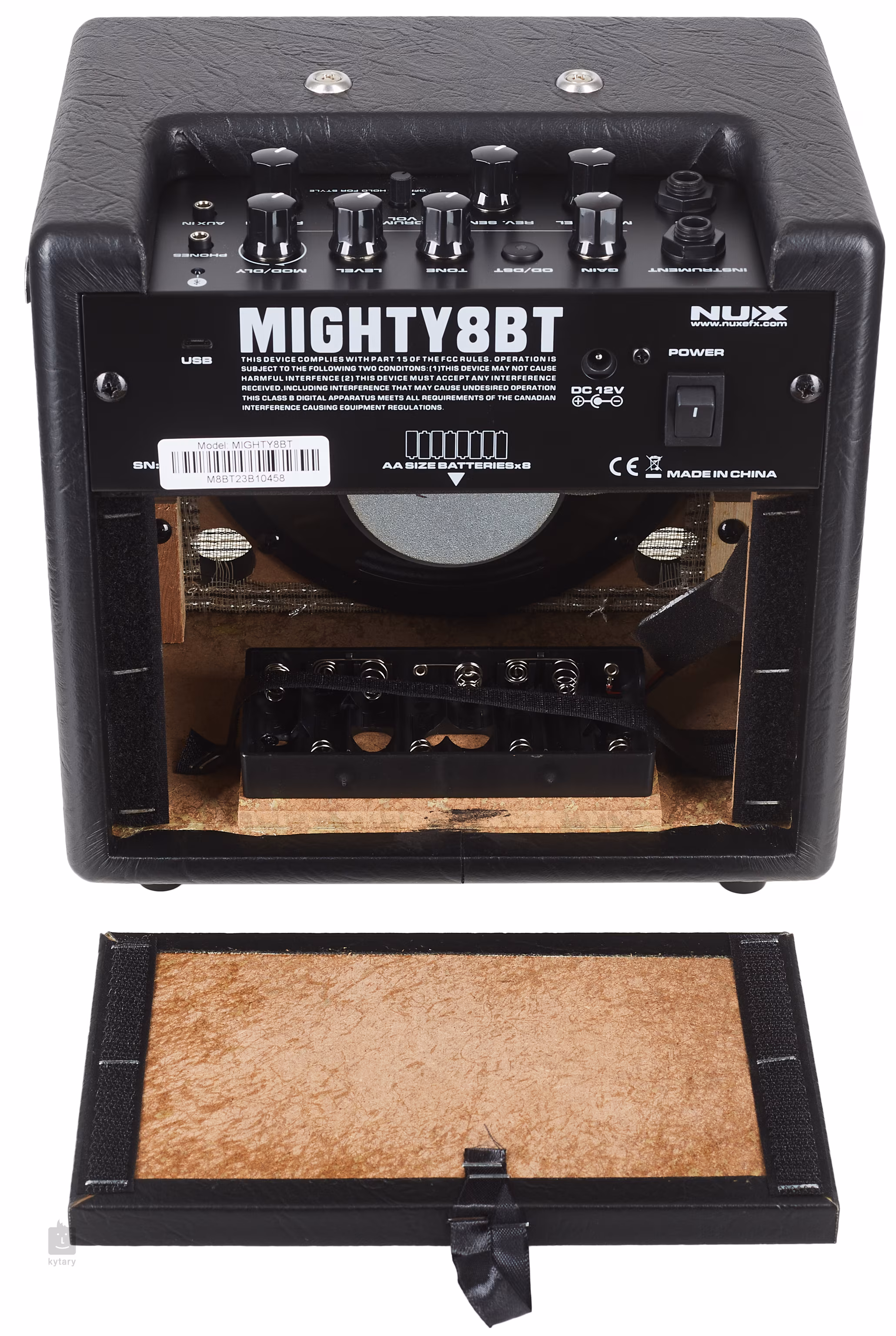 NUX Mighty 8BT je dvoukanálové přenosné kytarové kombo s výkonem 8 wattů vhodné pro pouliční umělce, na domácí cvičení, jamování s kamarády apod. Nabízí nástrojový kanál se třemi presety (Clean, Overdrive, Distortion) a možnosti jejich editace, mikrofonní kanál se zabudovaným efektem reverb, bicí automat s devíti různými patterny doprovodů a metronomem (nastavení tempa tlačítkem TAP), Aux In připojení pro externí zvukové zdroje a konektivitu s Bluetooth pro bezdrátové streamování vašich oblíbených nahrávek/jamování, výstup do sluchátek a USB pro nahrávání updatů.